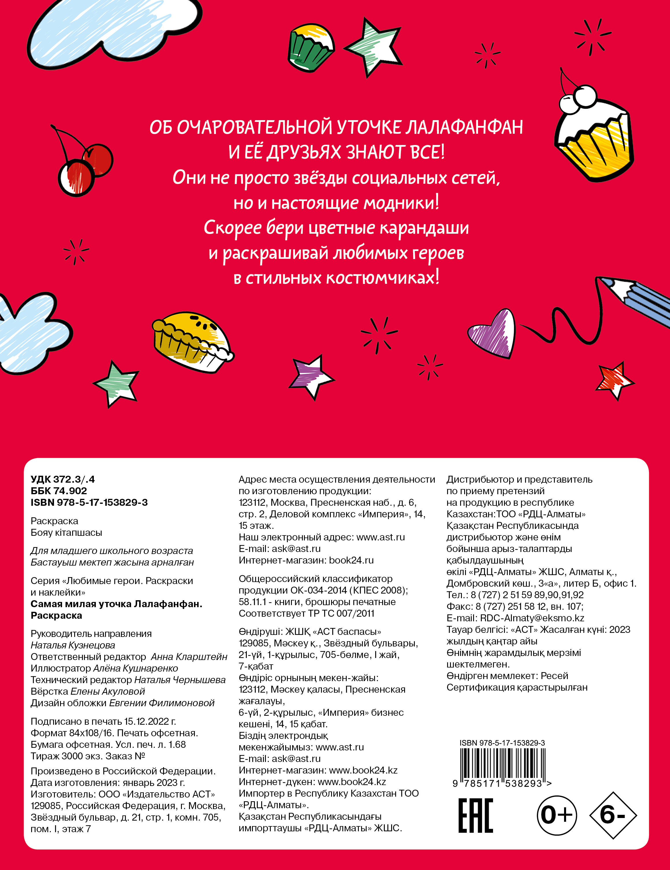 ОБ ОЧАРОВАТЕЛЬНОЙ УТОЧКЕ ЛАЛАФАНФАН И ЕЁ ДРУЗЬЯХ ЗНАЮТ ВСЕ! Они не просто звёзды социальных сетей, но и настоящие модники! Скорее бери цветные карандаши и раскрашивай любимых героев в стильных костюмчиках!| Издательство | ИЗДАТЕЛЬСТВО "АСТ" |