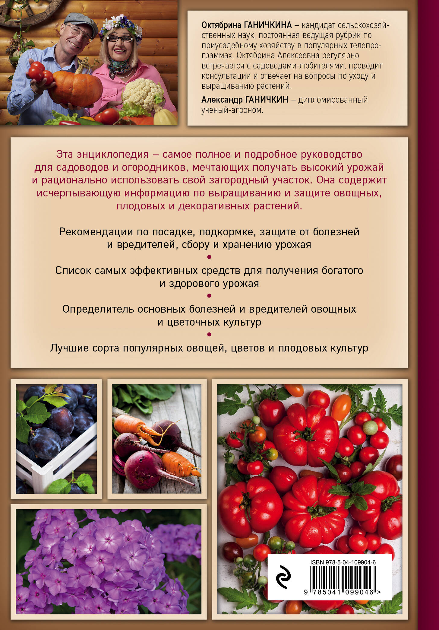 Эта энциклопедия - самое полное и подробное руководство для садоводов и огородников, мечтающих получать высокий урожай и рационально использовать свой загородный участок. Она содержит исчерпывающую информацию по выращиванию и защите овощных, плодовых и декоративных растений: - Рекомендации по посадке, подкормке, защите от болезней и вредителей, сбору и хранению урожая. - Список самых эффективных средств для получения богатого и здорового урожая. - Определитель основных болезней и вредителей овощных и цветочных культур. - Лучшие сорта популярных овощей, цветов и плодовых культур. Октябрина Ганичкина - кандидат сельскохозяйственных наук, постоянная ведущая рубрик по приусадебному хозяйству в популярных телепрограммах. Октябрина Алексеевна регулярно встречается с садоводами-любителями, проводит консультации и отвечает на вопросы по уходу и выращиванию растений. Александр Ганичкин - дипломированный ученый-агроном.| Издательство | ООО "Издательство "Эксмо" |
