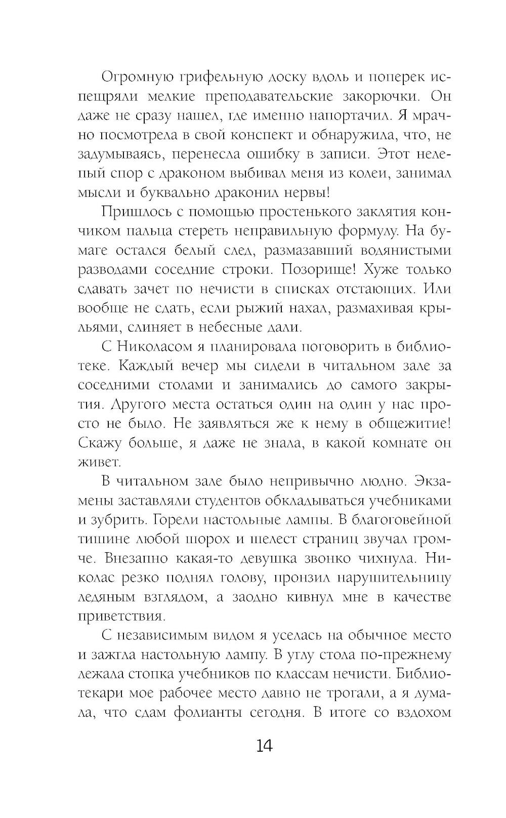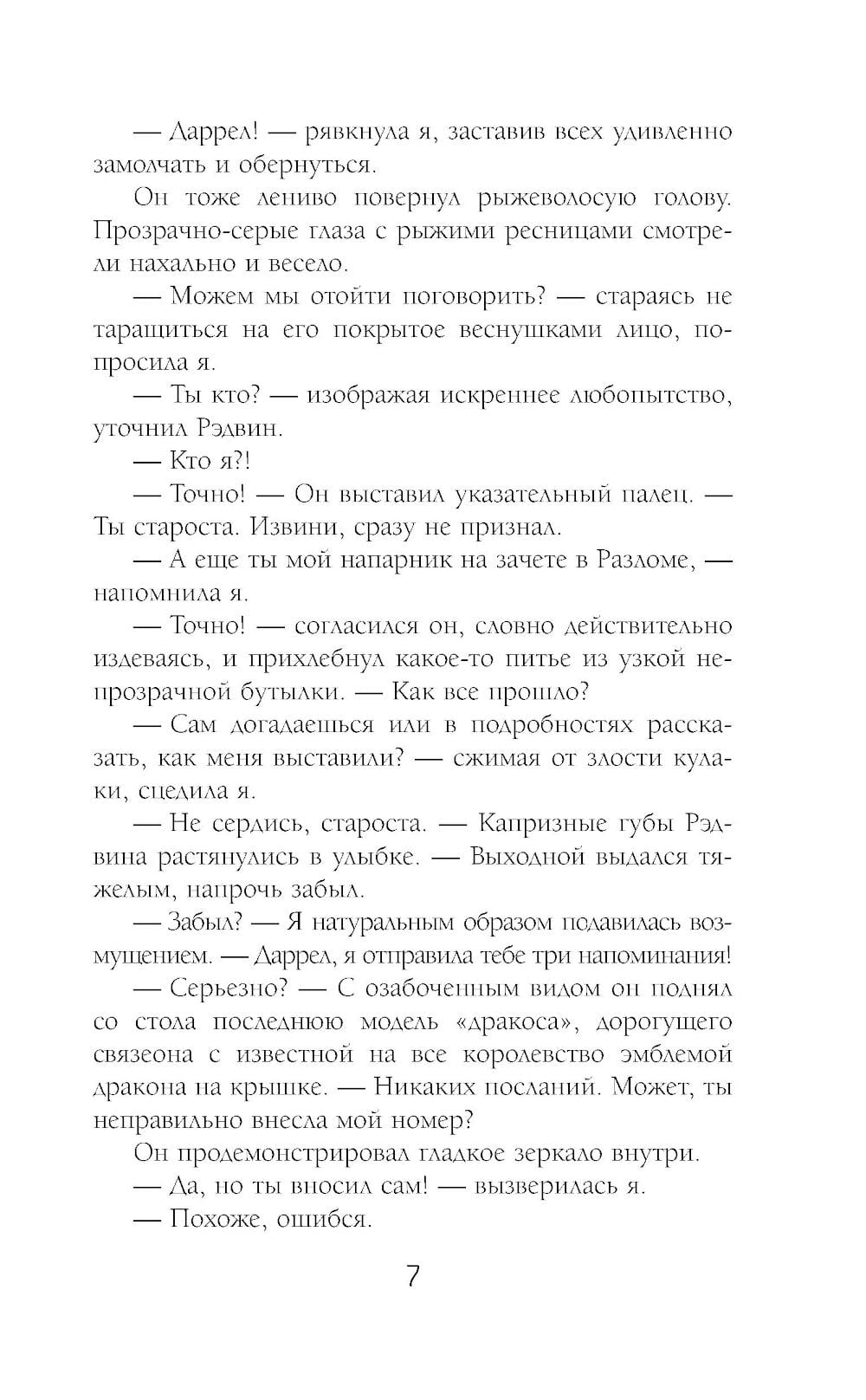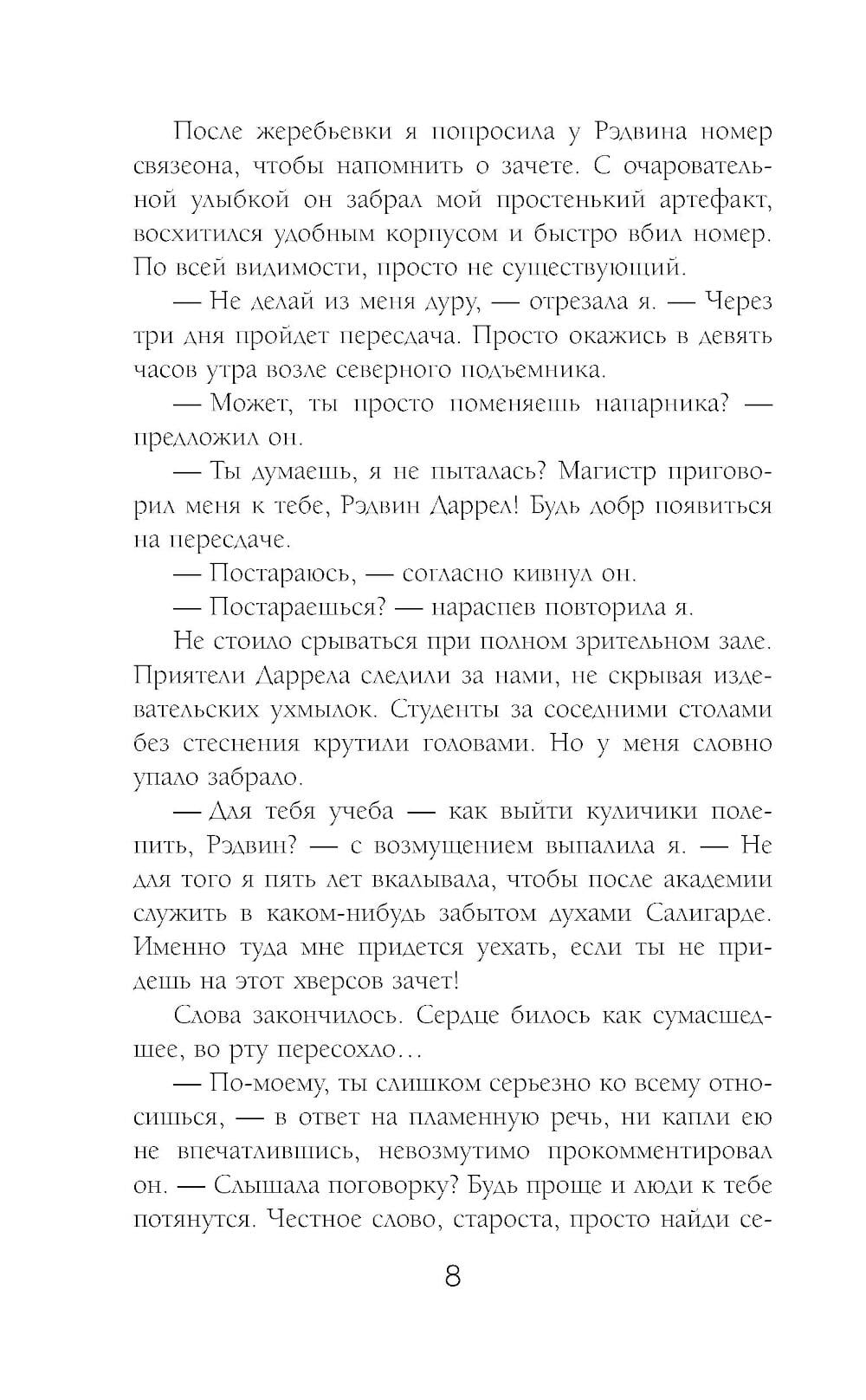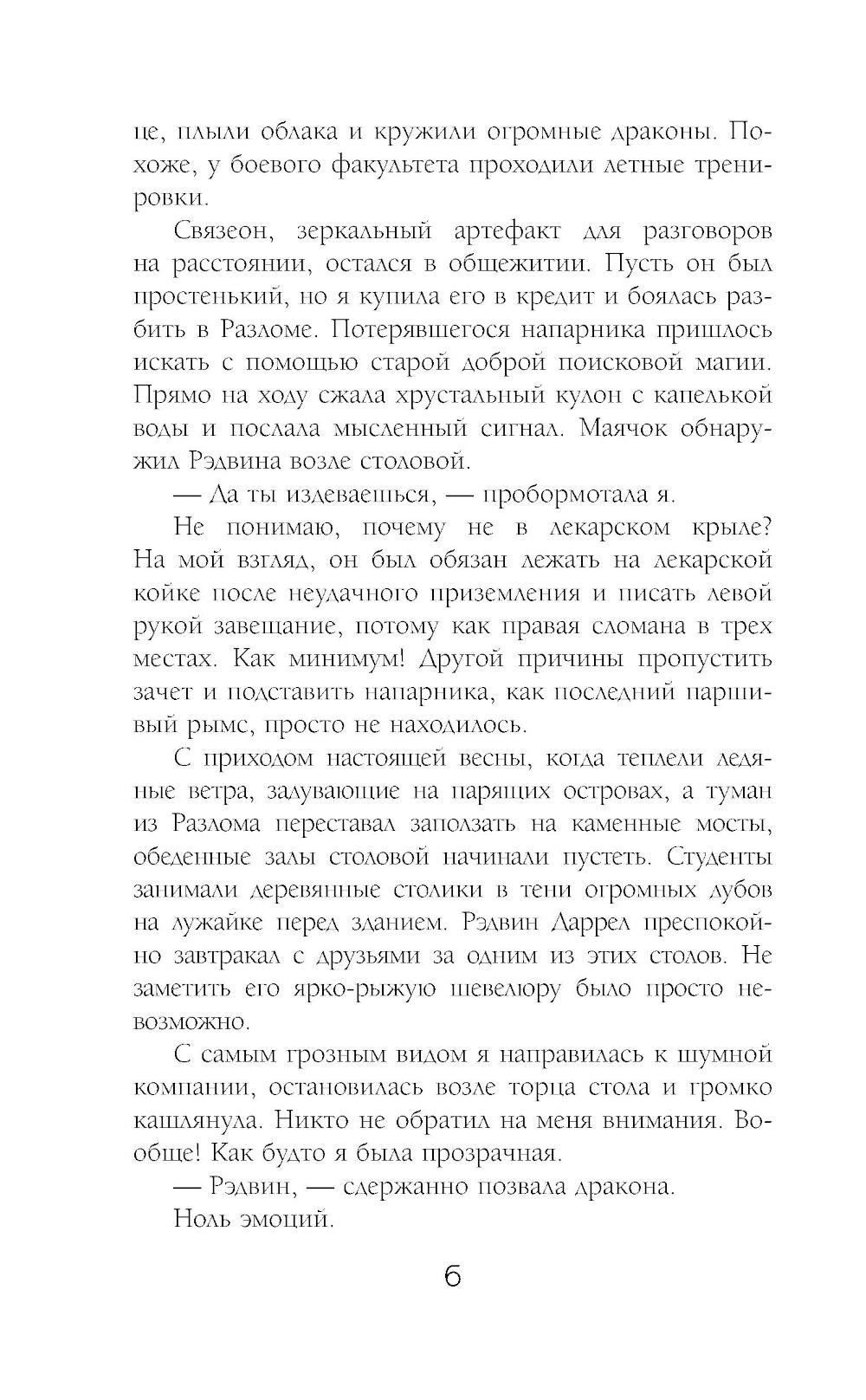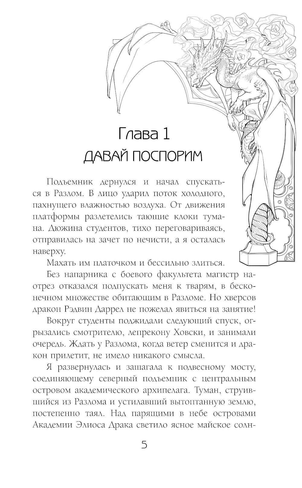 Впервые в жизни я не сдала зачет! Напарник Рэдвин Даррел его прогулял и забыл извиниться! Пришлось приложить немало усилий, чтобы он появился на пересдаче. И даже затеять дурацкий спор. Казалось бы, все закончилось, но Рэдвин возник у меня на пороге и объявил, что теперь мы связаны. К счастью, не навсегда, а на ближайшие три дня... Добро пожаловать в академию драконов, одно из лучших учебных заведений королевства Эрган! Здесь студенты изучают стихии и некромантию, драконы встают на крыло, а бессменный ректор Элиос Драк продолжает чудить. Призраки преподают и контролируют поведение в общежитиях, а из Разлома продолжают выползать самые невероятные твари. Благо мы за ними следим! А вот сами твари не всегда успевают следить, когда в Разлом лезем мы - бесстрашные студенты академии!| Издательство | Эксмо |
