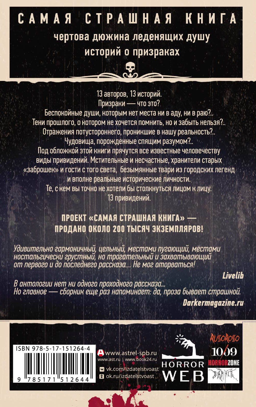 13 авторов, 13 историй. Призраки - что это? Беспокойные души, которым нет места ни в аду, ни в раю?.. Тени прошлого, о котором не хочется помнить, но и забыть нельзя?.. Отражения потустороннего, проникшие в нашу реальность?.. Чудовища, порожденные спящим разумом?.. Под обложкой этой книги прячутся все известные человечеству виды привидений. Мстительные и несчастные, хранители старых "заброшек" и гости с того света, безымянные твари из городских легенд и вполне реальные исторические личности. Те, с кем вы точно не хотели бы столкнуться лицом к лицу. 13 привидений.| Издательство | ИЗДАТЕЛЬСТВО "АСТ" |