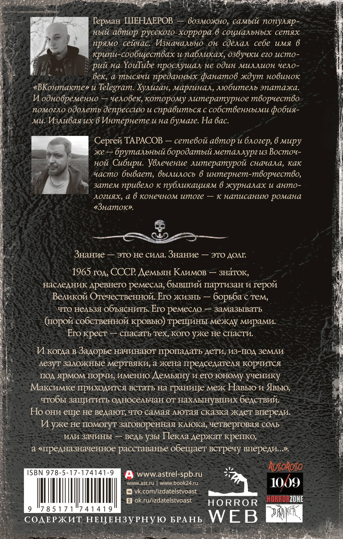 - Новинка в серии «Самая страшная книга». Для всех поклонников хоррора. - Увлекательная смесь «Ночного дозора» и «Ведьмака» в декорациях Советской деревни шестидесятых годов прошлого века. - Роман на стыке хоррора и городского фэнтези. - Герман Шендеров - автор высоко оцененненого критиками сборника «Из бездны», Сергей Тарасов - популярный автор сетевых рассказов в жанре хоррор.| Издательство | Издательство "АСТ" |