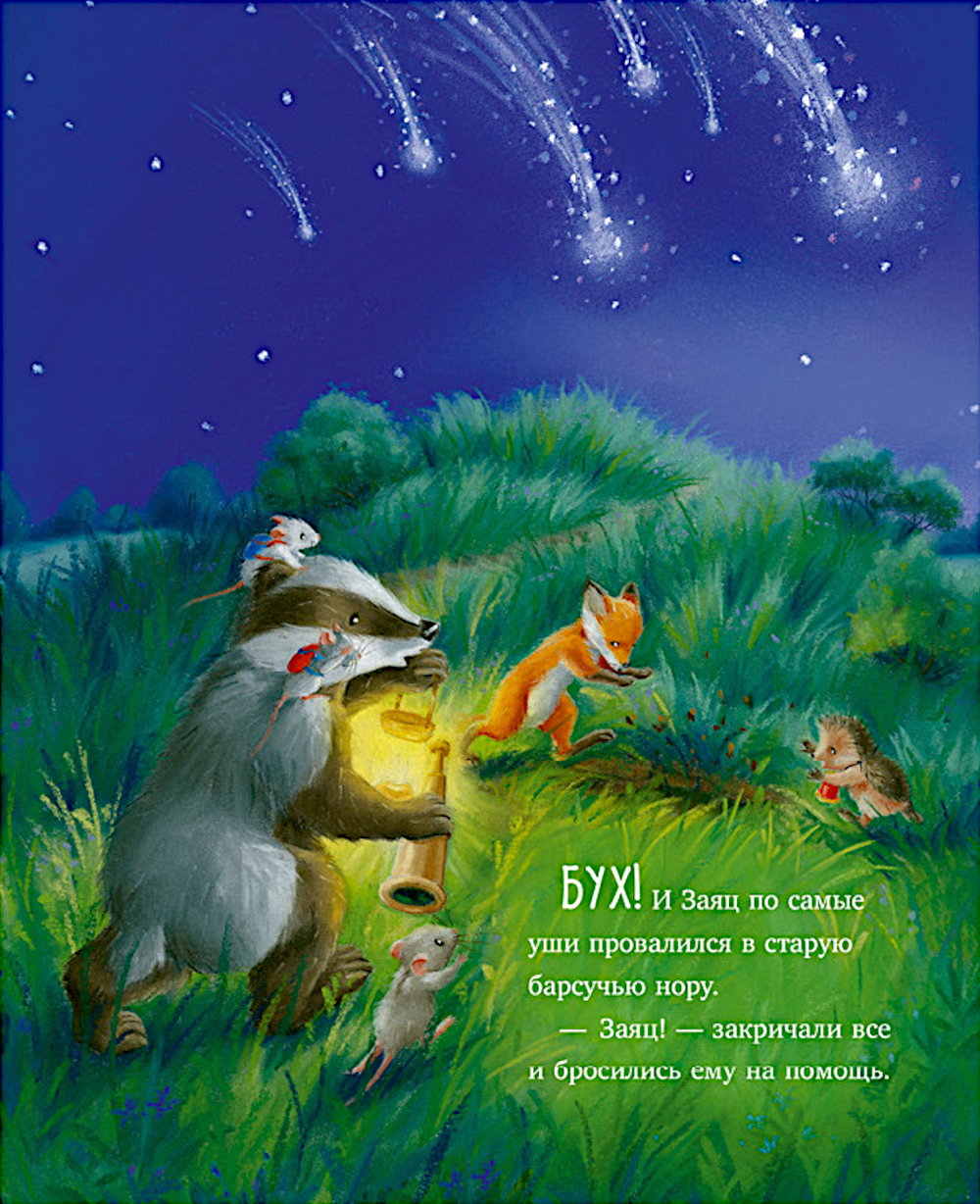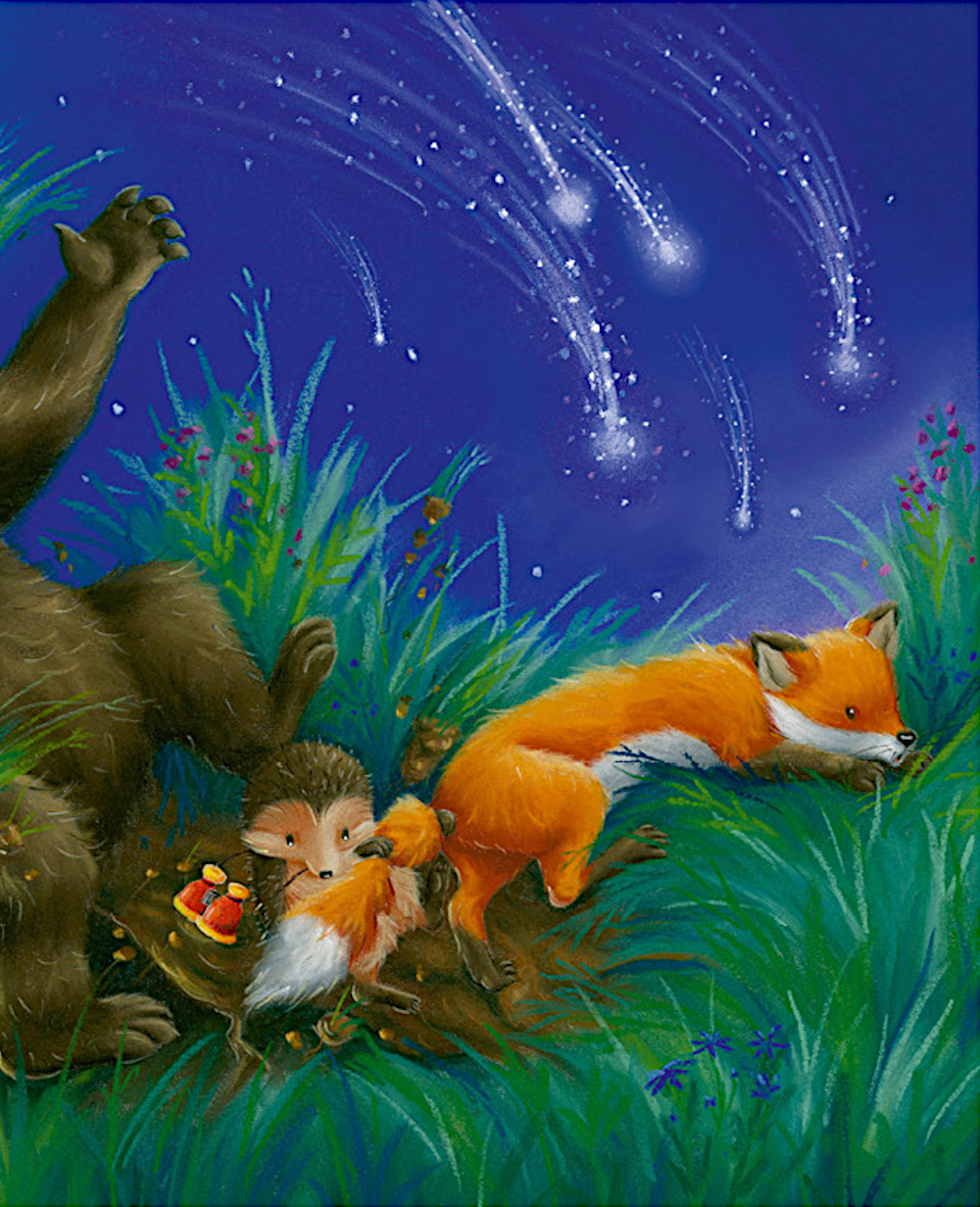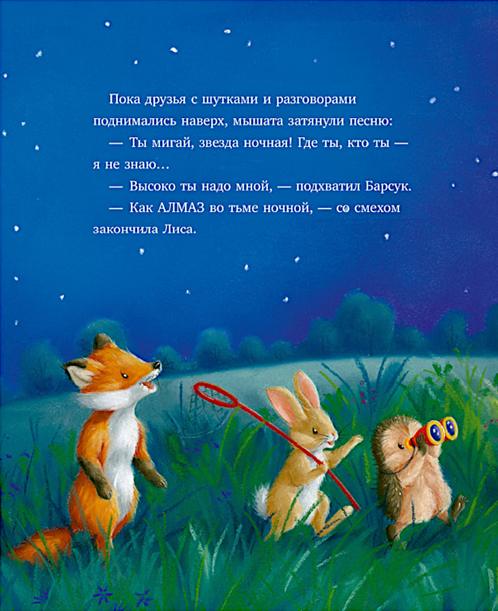 Однажды ясной ночью Ежулька увидел на небе звездопад! Ежик рассказал об этом событии друзьям - Лисе, Зайцу, Барсуку и маме-Мышке. Все вместе они отправились на холм, чтобы увидеть все звездное небо. Но кое-что может помешать им посмотреть на падающие звезды и загадать заветные желания!| Издательство | Клевер-Медиа-Групп |