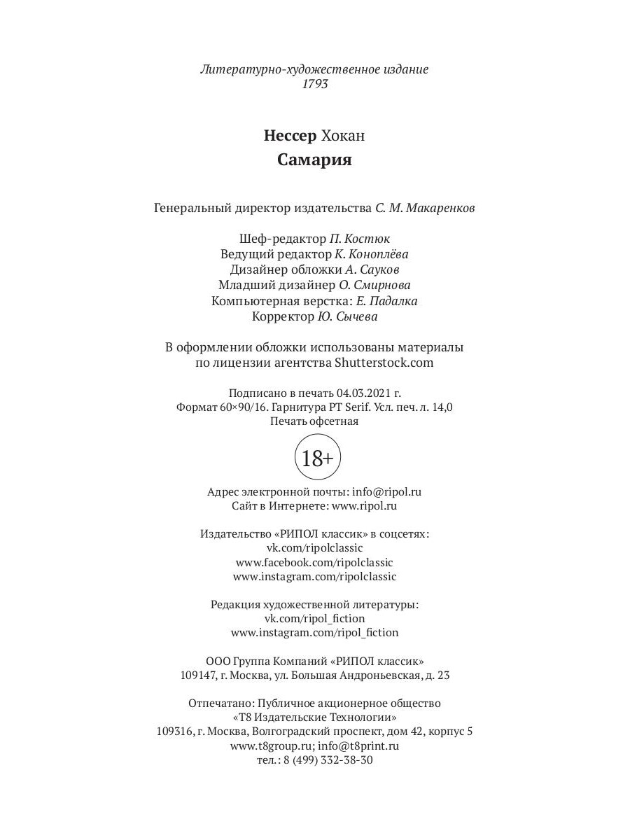 Под одной обложкой собраны темные интригующие истории о мести, вине, искуплении и о тайном, которое так часто становится явным. Все выдержано в фирменном стиле Хокана Нессера: проза отражает истинное понимание человеческой природы. Перед вами предстанут незабываемые роман современного шведского писателя Хокана Нессера «Том» и рассказы «Змеиный Цветок из "Самарии"» и «Вся информация по делу».| Издательство | Рипол Классик |