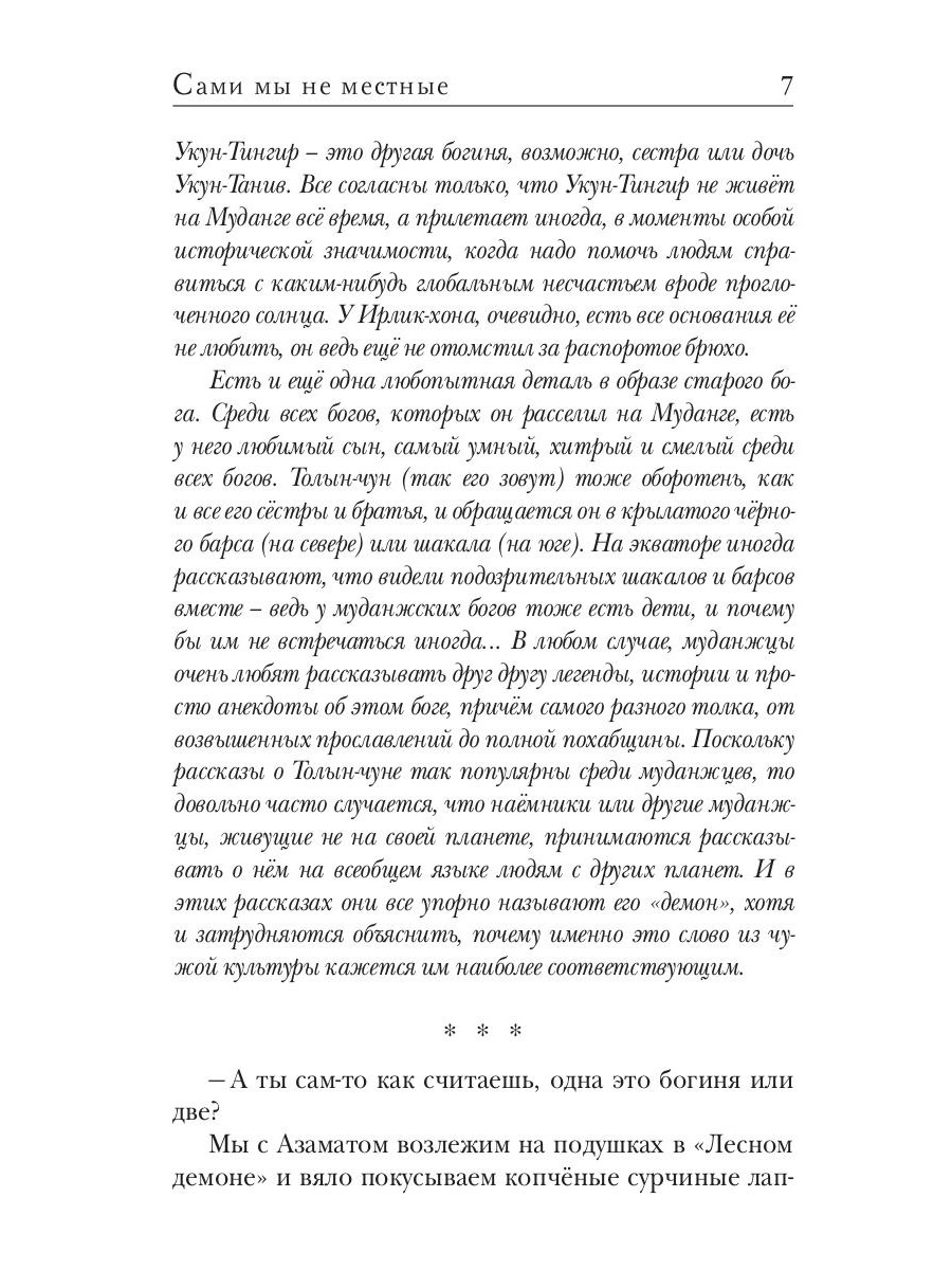 Жить в чужой стране и вообще-то непросто, а если это не страна, а целая планета и до родного дома десятки миллионов световых лет… И у тебя там никого нет, кроме любимого мужа, который, впрочем, страдает почти всеми местными заморочками, - тут уж приходится быть начеку и в полной боевой готовности круглосуточно. А между тем в инопланетном раю, раскинувшемся от северных снегов до южных джунглей, где боги ходят по улицам, а на подводных тварей можно полюбоваться из окна вагона, так хочется просто наслаждаться жизнью…