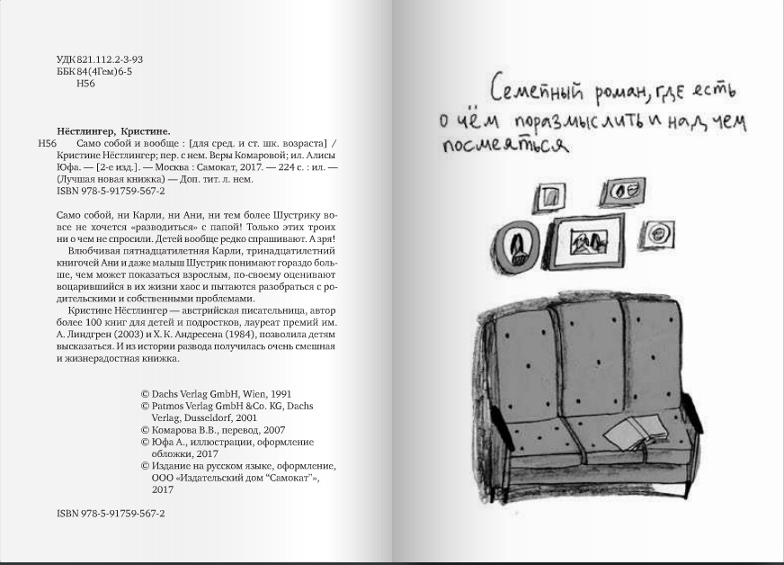 Само собой, ни Карли, ни Ани, ни тем более Шустрику вовсе не хочется «разводиться» с папой! Только этих троих ни о чем не спросили. Детей вообще редко спрашивают. А зря! Влюбчивая пятнадцатилетняя Карли, тринадцатилетний книгочей Ани и даже малыш Шустрик понимают гораздо больше, чем может показаться взрослым, по-своему оценивают воцарившийся в их жизни хаос и пытаются разобраться с родительскими и собственными проблемами. Кристине Нёстлингер - австрийская писательница, автор более 100 книг для детей и подростков, лауреат премий им. А. Линдгрен (2003) и Х.К. Андресена (1984), позволила детям высказаться. И из истории развода получилась очень смешная и жизнерадостная книжка.
