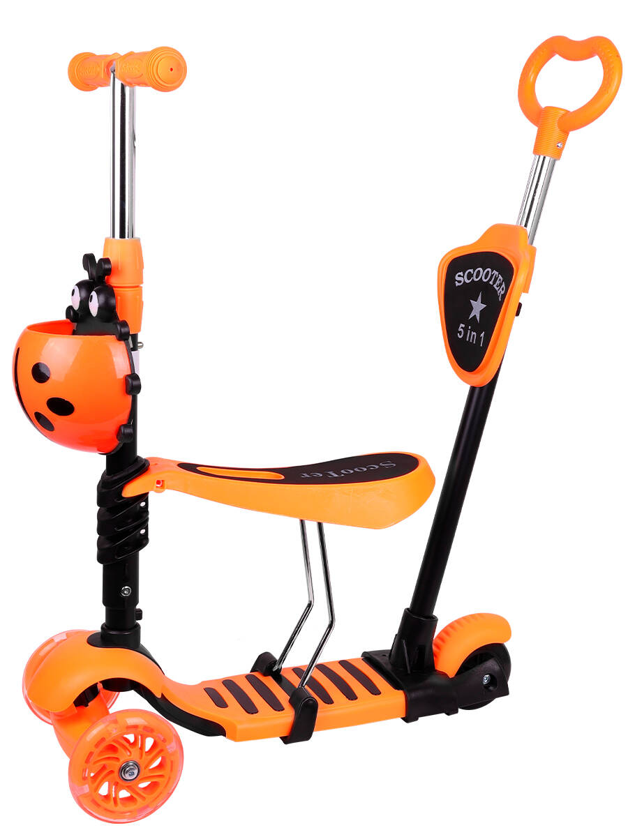 Самокат 3-х кол.3в1(56*13*56-75)кол. 11,8/8см,PU,свет.,сиденье,регул.руль,оранжевый(Арт.WX-5-in-1O)
