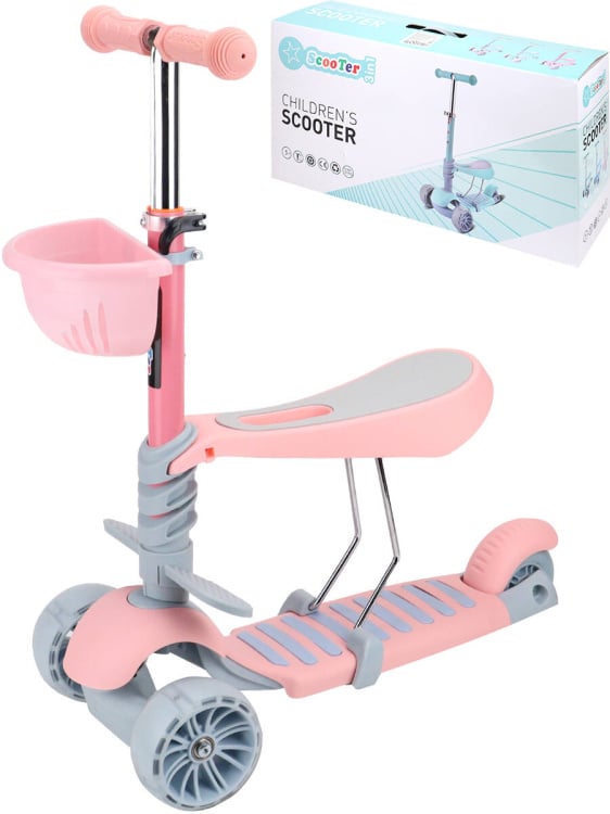 Самокат 3-х колесный 3 в 1 розовый 57*23*56-76 см, заднее колесо PVC без света (Арт. СМК-0374)