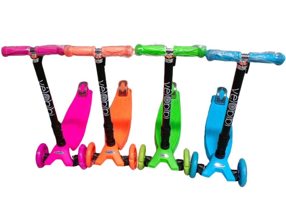 Аннотация: Самокат 3-х колесный складной оранжевый 57*25*78-87 см, светящиеся колеса (Арт. СМК-0370)