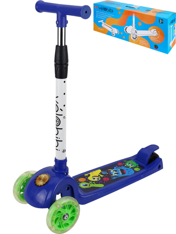 Аннотация: Самокат 3-х колесный складной синий 55*13*66-76 см (макс.нагрузка до 40 кг) (Арт. СМК-0363)