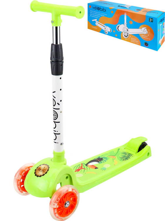 Аннотация: Самокат 3-х колесный складной зелёный 55*13*66-76 см (макс.нагрузка до 40 кг) (Арт. СМК-0364)