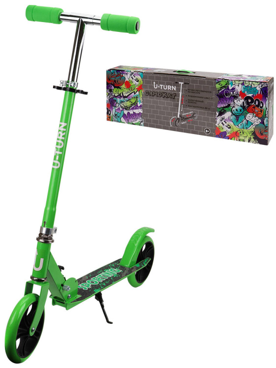 Аннотация: Самокат двухколесный (колеса PU 18 см, 80*10*75-102 см, макс. вес 60 кг, зелёный) ( Арт. СМК-9933)