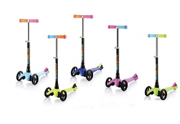 Трехколесный самокат Roing Scooters с регулируемой по высоте ручкой рассчитан на вес до 40 кг. Самокат можно подогнать под рост ребенка. Сзади установлен ножной тормоз. Колеса и ручки самоката покрыты резиной, а сам самокат раскрашен в яркий цвет.