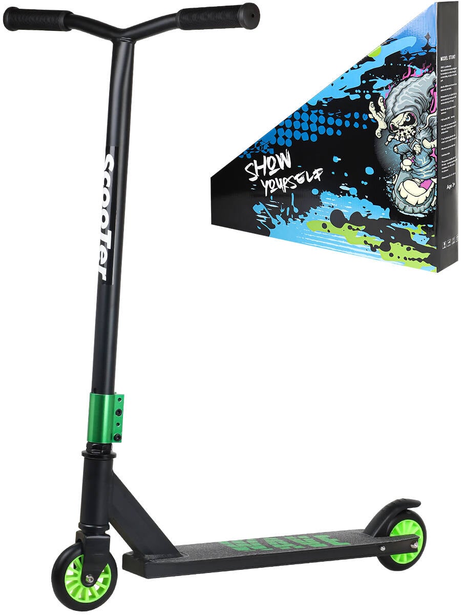 Самокат трюковый (65x11x84),кол.10см,макс.вес 100кг.,зеленый,в коробке) ( Арт. СМК-0989)