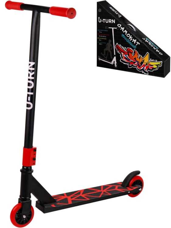 Самокат трюковый красный(66x9,5x84 см),кол.10см ПУ/пластик,макс.вес 80кг.,в коробке) ( Арт. И-0319)