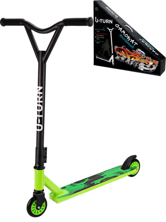 Аннотация: Самокат трюковый зелёный(66x10x85 см),кол.11см ПУ/пластик,макс.вес 80кг.,в коробке) ( Арт. И-0321)