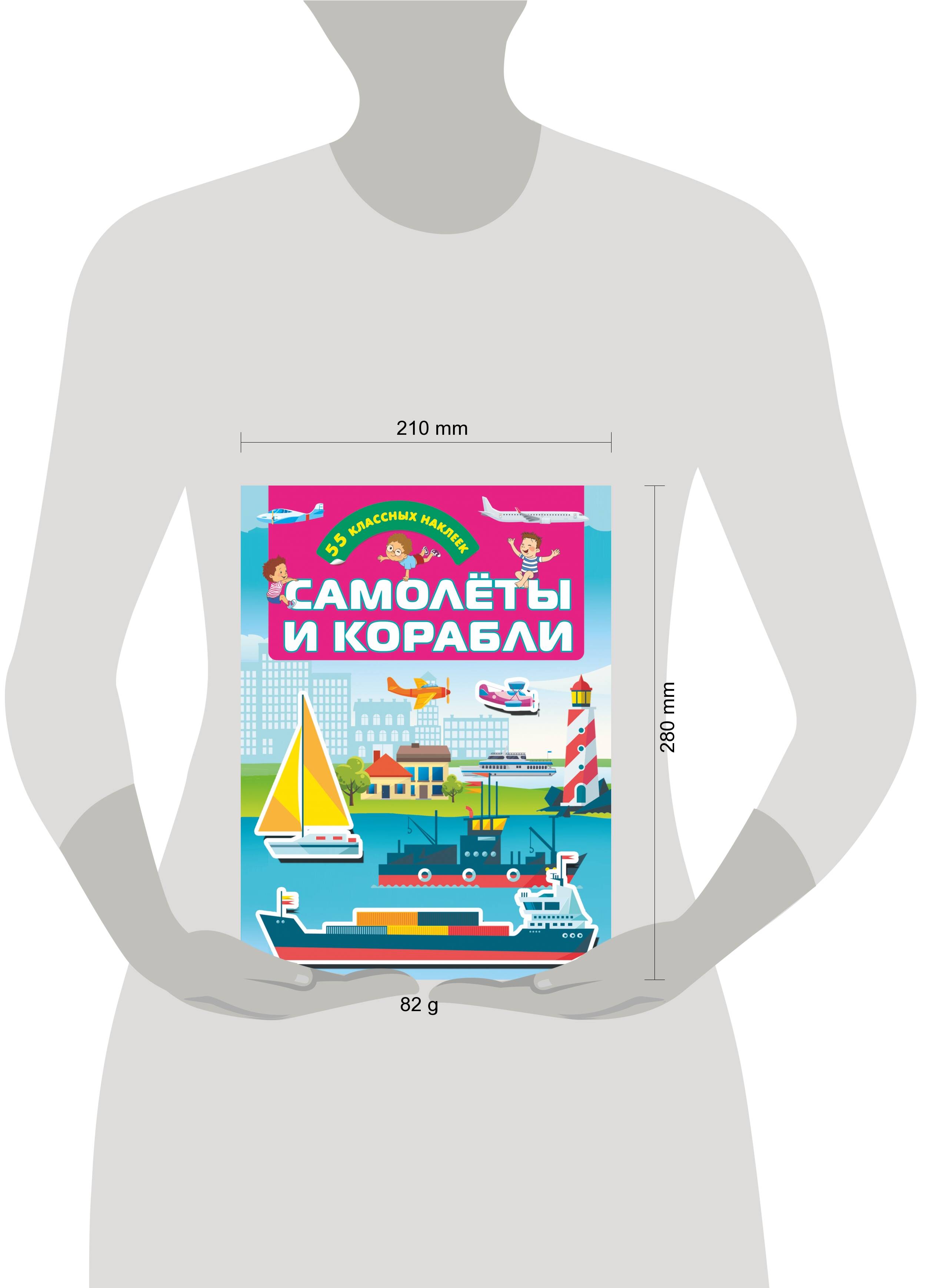 О чем эта книга «Самолёты и корабли» - это увлекательные развивающие задания + чудесные красочные наклейки для знакомства с водным и воздушным транспортом. Кому эта книга будет интересна Эффективный тренажер для развития познавательных способностей + коллекция стикеров - специально для компании дружных и веселых мальчишек, а также их родителей. Каковы особенности этой книги • Выполняя интереснее задания и знакомясь с кораблями и самолетами, дошколята будут читать, считать, сравнивать, экспериментировать, фантазировать, думать и играть. • Яркие наклейки сделают игры интересными и полезными - помогут ребенку тренировать пальчики, развивать внимание, мышление, фантазию. • Играть с книжкой можно одному или весёлой дружной компанией. Коллекция наклеек-машинок и игровые задания позволят ребёнку интересно и полезно провести время.| Издательство | ИЗДАТЕЛЬСТВО "АСТ" |