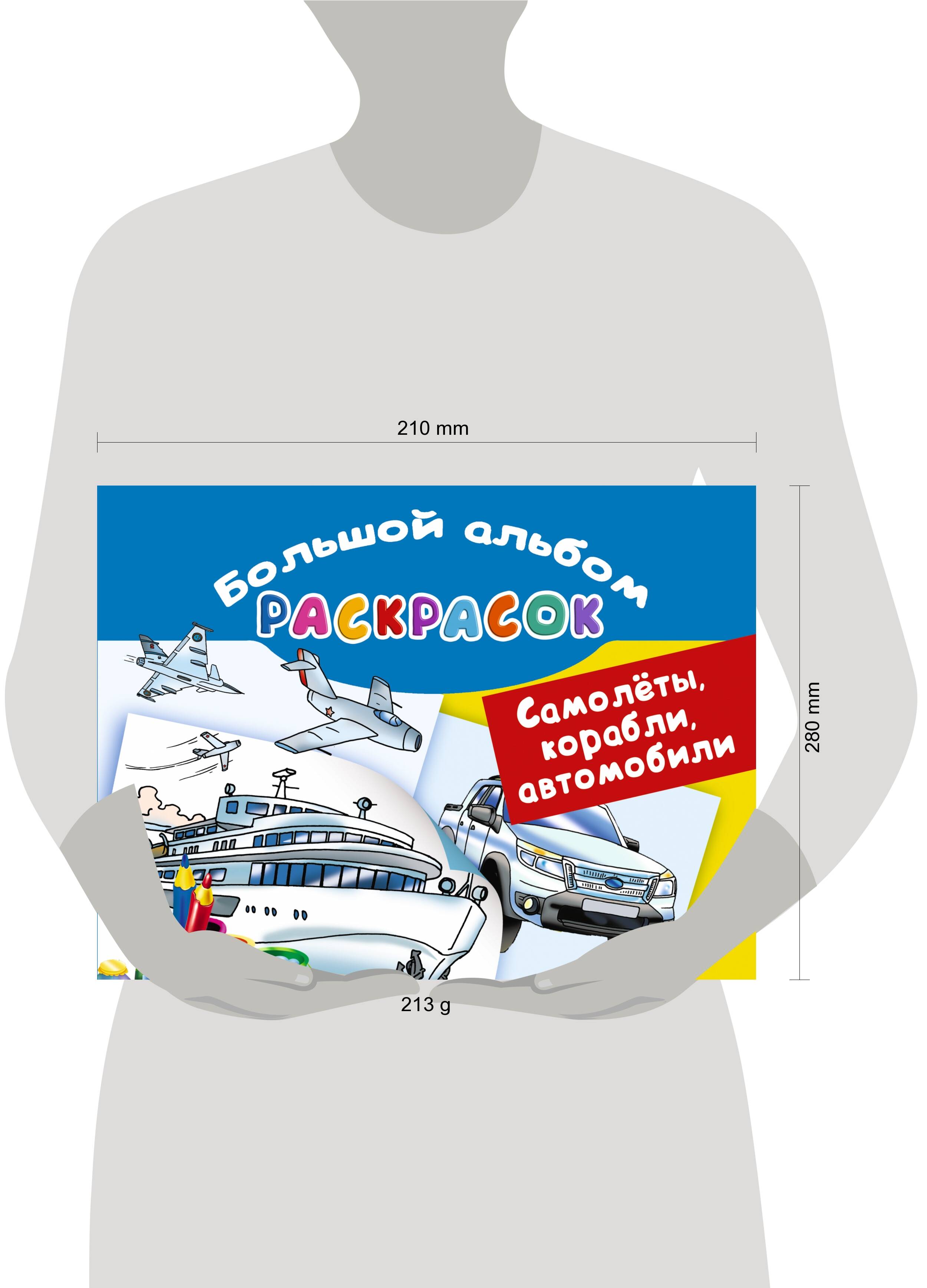 Самолеты, корабли, автомобили. Большой альбом раскрасок
