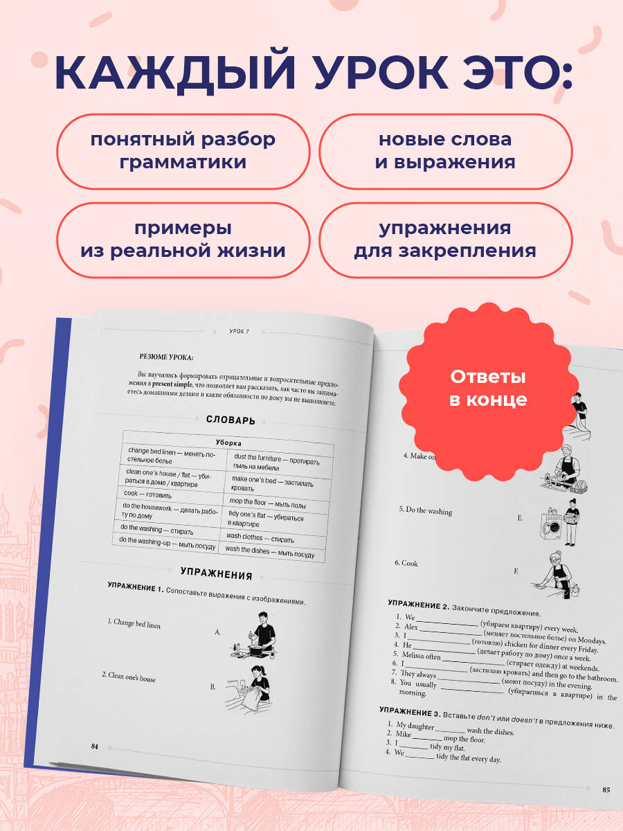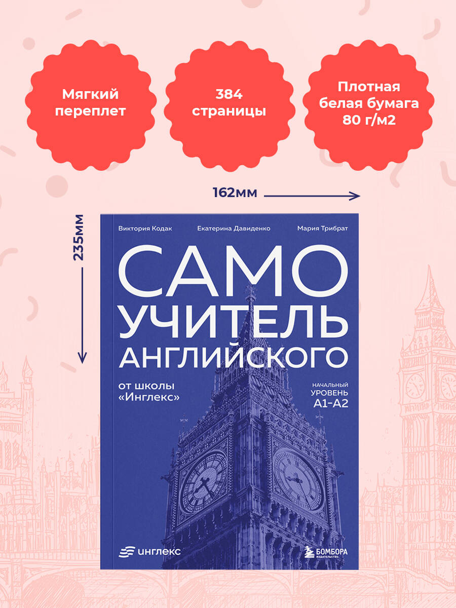 Оставьте старые учебники английского в стороне! Авторы самоучителя для начинающих, опытные преподаватели крупнейшей школы английского языка «Инглекс» с более чем 150 тыс. подписчиков в соцсетях, пересматривают давно устоявшийся подход к обучению и предлагают новый. Мир не стоит на месте, а вместе с ним меняются и методики преподавания языков. Чтобы освоить английский язык, больше не нужно зубрить правила слово в слово и пытаться запомнить страшные термины! Самоучитель в ваших руках предлагает простые и запоминающиеся разборы теории, яркие примеры и множество практики для закрепления. Изучая грамматику на повседневных темах, вы не только освоите язык с нуля до уровня А2, но и запомните актуальную лексику и разговорные фразы. Обретайте уверенность в собственном английском вместе с нашим самоучителем!| Издательство | ООО "Издательство "Эксмо" |
