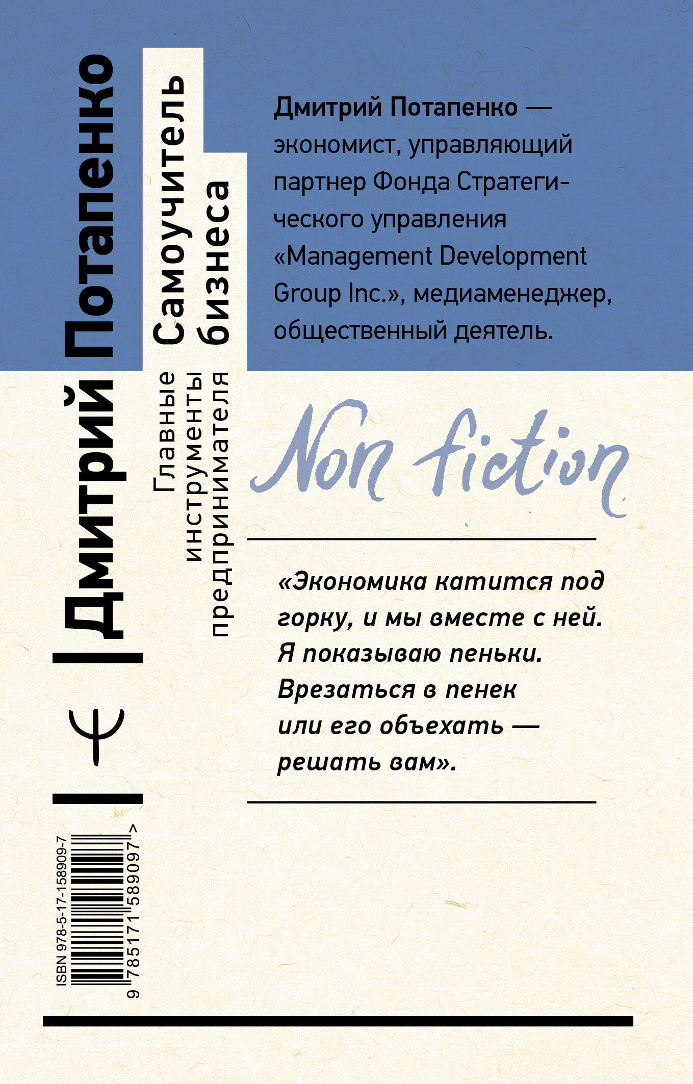 НАСТОЯЩИЙ МАТЕРИАЛ (ИНФОРМАЦИЯ) ПРОИЗВЕДЕН И РАСПРОСТРАНЕН ИНОСТРАННЫМ АГЕНТОМ ПОТАПЕНКО ДМИТРИЕМ ВАЛЕРЬЕВИЧЕМ ЛИБО КАСАЕТСЯ ДЕЯТЕЛЬНОСТИ ИНОСТРАННОГО АГЕНТА ПОТАПЕНКО ДМИТРИЯ ВАЛЕРЬЕВИЧА. Вместе с решением открыть свое дело перед вами встает ряд вопросов, ответы на которые можно получить, или набив шишек, или обратившись к специалисту, который прояснит матчасть. Эта книга написана экономистом Дмитрием Потапенко для того, чтобы каждый настоящий или будущий бизнесмен мог пошагово и с умом организовать свой бизнес: от постановки целей компании и юридической поддержки до поисков идеального персонала и бюджетного управления. Как выстроить структуру компании и из чего состоит ее успех? Как создать и развить магазин? Как строить бизнес в сфере производства? Как построить компанию в сфере общепита? - На все эти вопросы вы найдете ответы. Эта книга незаменима для тех, кто задумывается о собственном деле или хочет оптимизировать уже имеющийся бизнес. "Для бизнеса важно понимание того, что мы делали вчера, что делаем сегодня и что будем делать завтра. Если вы не знаете, куда хотите прийти, требовать от мироздания каких-то объемов продаж бессмысленно и беспринципно. Вы выбрасываете в воздух абстрактное утверждение "Хочу денег!", но что именно и каким образом вы хотите получить, не знаете ни вы, ни ваши сотрудники. Представьте, что перед вами несколько дверей, вы поставили цель выйти, но не решили, через какую именно. В бизнесе все то же самое". "Необходимо выстроить цели и бизнес-процессы так, чтобы они не допускали воровства. Ворует не человек - ворует система. Если система допускает ошибки, в противоположность ей выстраивается другая мощная система - система воровства". "Экономика катится под горку, и мы вместе с ней. Я показываю пеньки. Врезаться в пенек или его объехать - решать вам".| Издательство | Издательство "АСТ" |