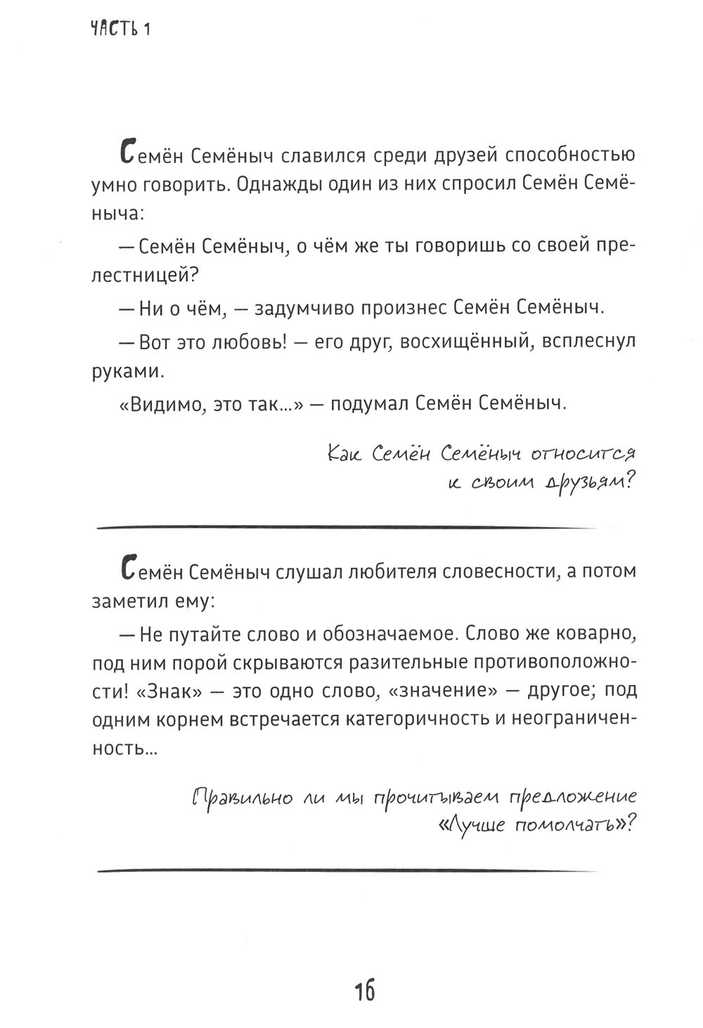 Прислушайтесь: вы ведёте постоянный внутренний разговор. Но постойте, с кем вы говорите? С собой? Понятно, что такой разговор давно назрел и был бы, наверное, очень кстати... Однако же где ответы? Почему мы говорим-говорим-говорим и не слышим их? Да, нам пора услышать самих себя... Это самое сложное. «Самоучитель» позволит вам услышать себя, начать осознанный разговор с собой, открыть тайны философии и психологии вашей жизни. Главный герой этой книги - трогательный и нелепый Семён Семёныч, наше с вами альтер эго. Вот почему истории «Самоучителя» похожи на дзен-коаны, суфийские притчи. Они станут для вас одновременно и милым развлечением, и серьёзным интеллектуальным чтивом. Автор «Складки времени», «Психософического трактата», «Способов думать», «Духа времени» и «Четвёртой мировой войны» показывает в «Самоучителе», как работает мысль, которая способна схватывать действительное и будущее. Три самоучителя в одном - это иллюстрированный путеводитель к себе. Увлекательного вам путешествия!| Издательство | ИД "Нева" |