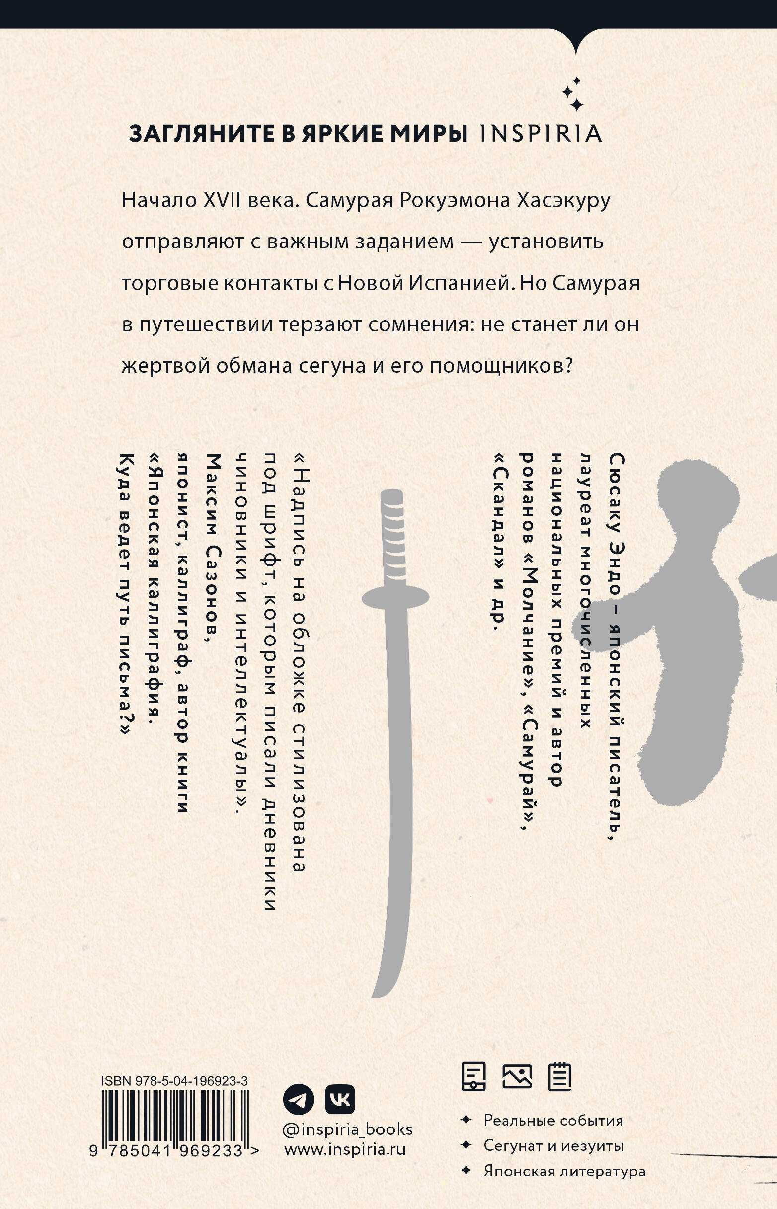 Исторический роман признанного классика японской литературы Сюсаку Эндо рассказывает о Японии XVII века, о временах самураев и междоусобиц. Самурая Ракуэмона Хасэкуру отправляют вместе с соотечественниками в Новую Испанию (Мексику) для установления торговых отношений. Все ли переживут плавание? Как христиане отнесутся к японцам?| Издательство | ООО "Издательство "Эксмо" |