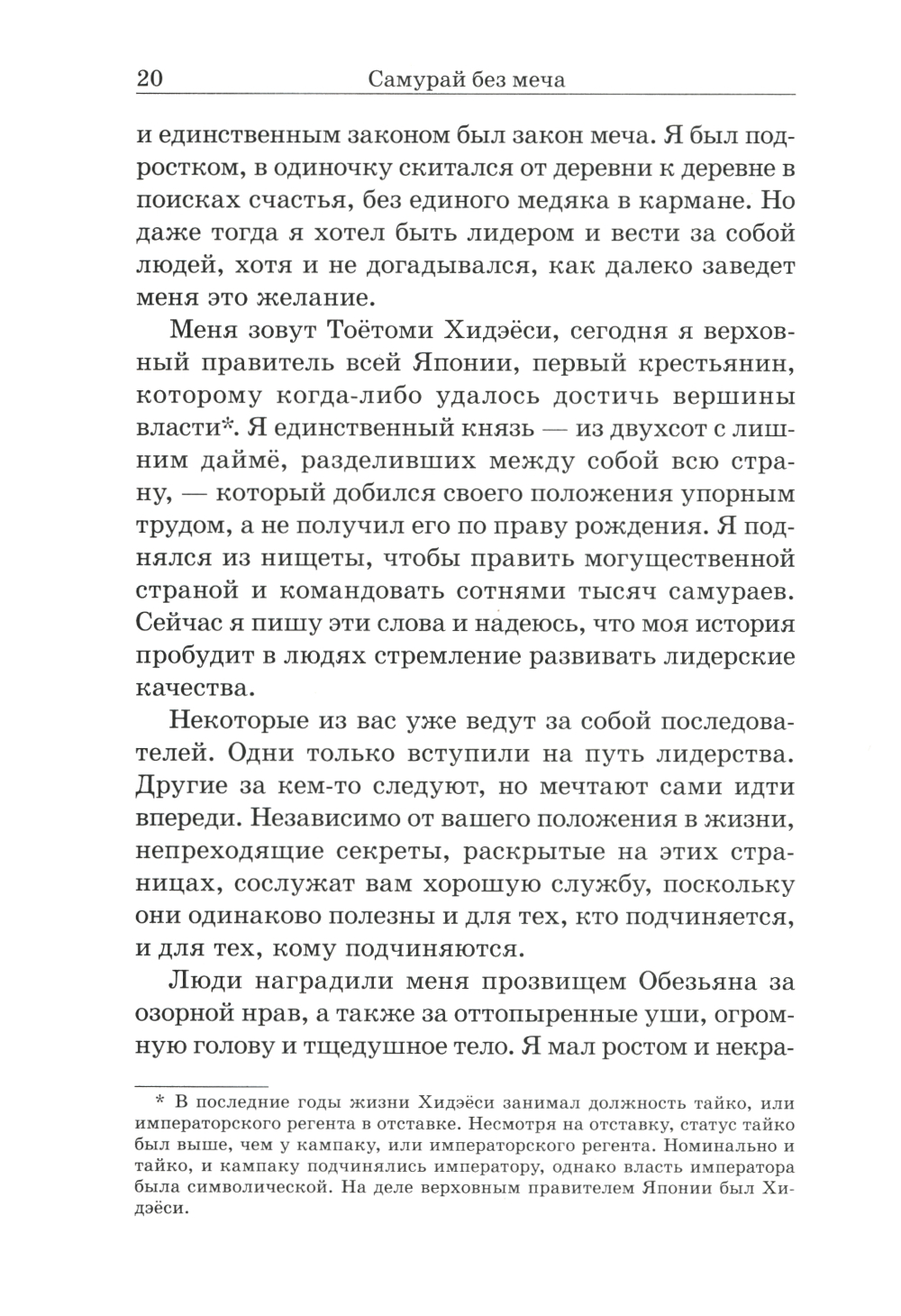 Секреты лидерства, которые использовал легендарный японский полководец Хидэёси Тоётоми, чтобы достичь вершины славы, неподвластны времени. Книга «Самурай без меча» достойна занять свое место в числе таких классических источников восточной мудрости, как «Трактат о военном искусстве» Сунь-цзы и «Книга пяти колец» Миямото Мусаси. Эти универсальные принципы, стратегии и тактики помогут каждому, кто стремится достичь успеха в бизнесе и в жизни сегодня.| Издательство | Попурри |
