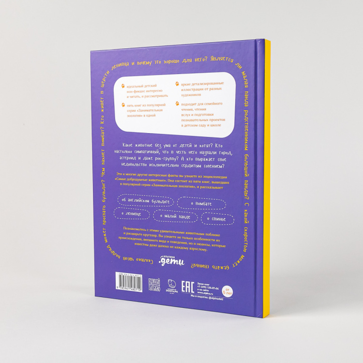 Животные, собранные в этом сборнике - бульдог, вомбат, малая панда, ленивец и свинья - действительно очень добродушные, милые и иногда ленивые! Один из них без ума от детей и котят, другой настолько симпатичный, что в честь него назвали город, астероид и даже рок-группу. Еще один любит поспать, свесив лапы и высунув язык, другой - мастер выпрашивать вкусненькое! А кое-кто выражает свое недовольство исключительно сердитым сопением. Хотите знать, кому конкретно принадлежат перечисленные признаки? Скорее открывайте эту энциклопедию и узнавайте эти и другие необычные факты о самых добродушных животных!
