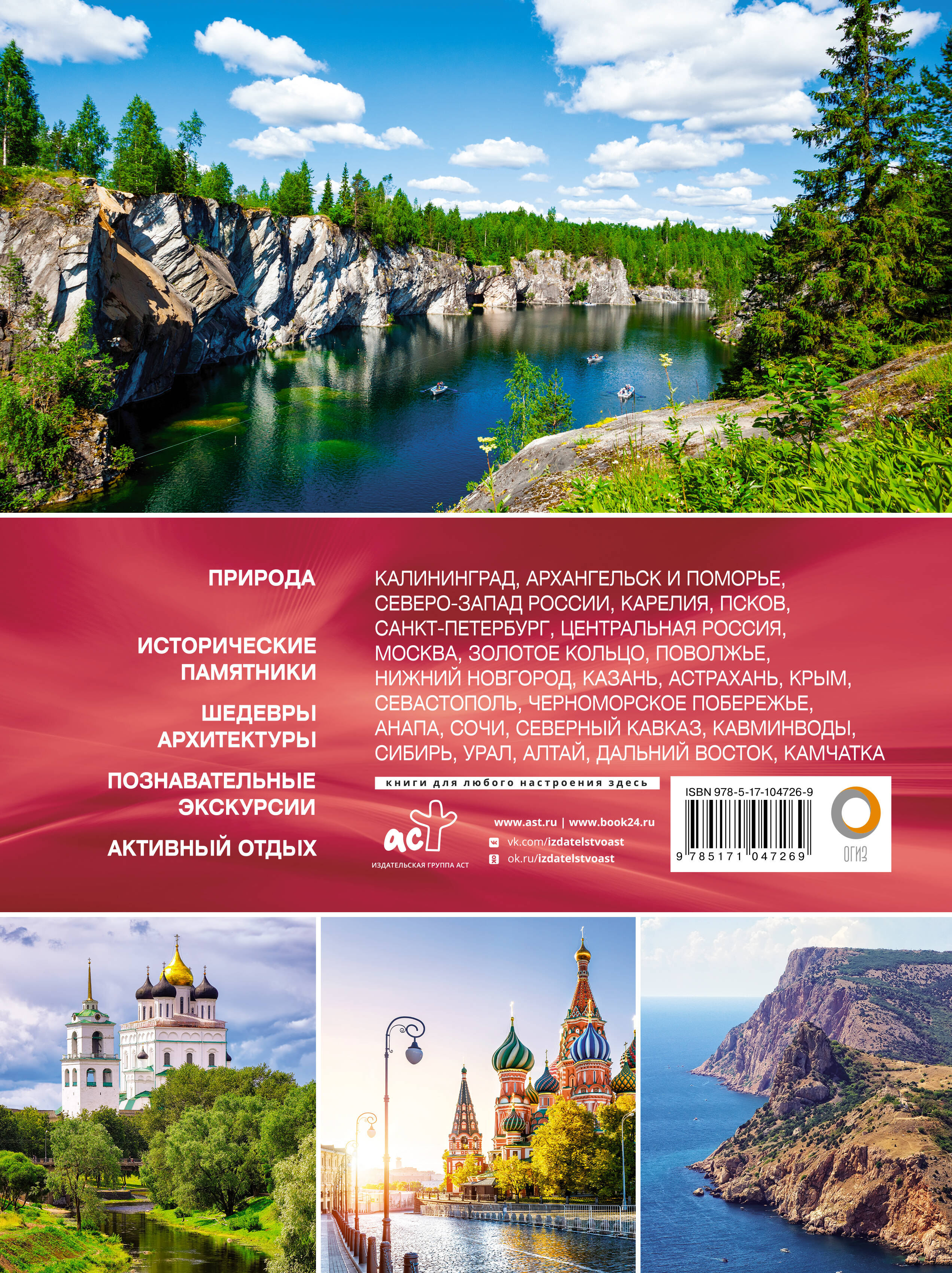 Эта подарочная книга - уникальный путеводитель по нашей необъятной стране, содержащий интересные материалы и качественные фотографии, а также карты и справочные материалы, которые позволят подготовиться к путешествию (сориентироваться в том, когда лучше всего планировать поездку, что обязательно стоит посмотреть, как удобнее добраться до того или иного места и т. п.)! В книге несколько разделов, соответствующих большим регионам: Северо-Запад, Центр, Поволжье, Кавказ и Крым, Урал, Сибирь и Дальний Восток, что позволяет наметить себе цель для ближайшего путешествия и начать сбор информации о месте. Данная книга - отличный подарок для тех, кто любит путешествовать - это своеобразный стимул к посещению новых интересных мест. А также замечательный подарок для тех, кто не имеет возможностей для поездок, поскольку информация и фото, приведенные в книге, помогают путешествовать по нашей необъятной стране, не выходя из дома.| Издательство | Издательство "АСТ" |