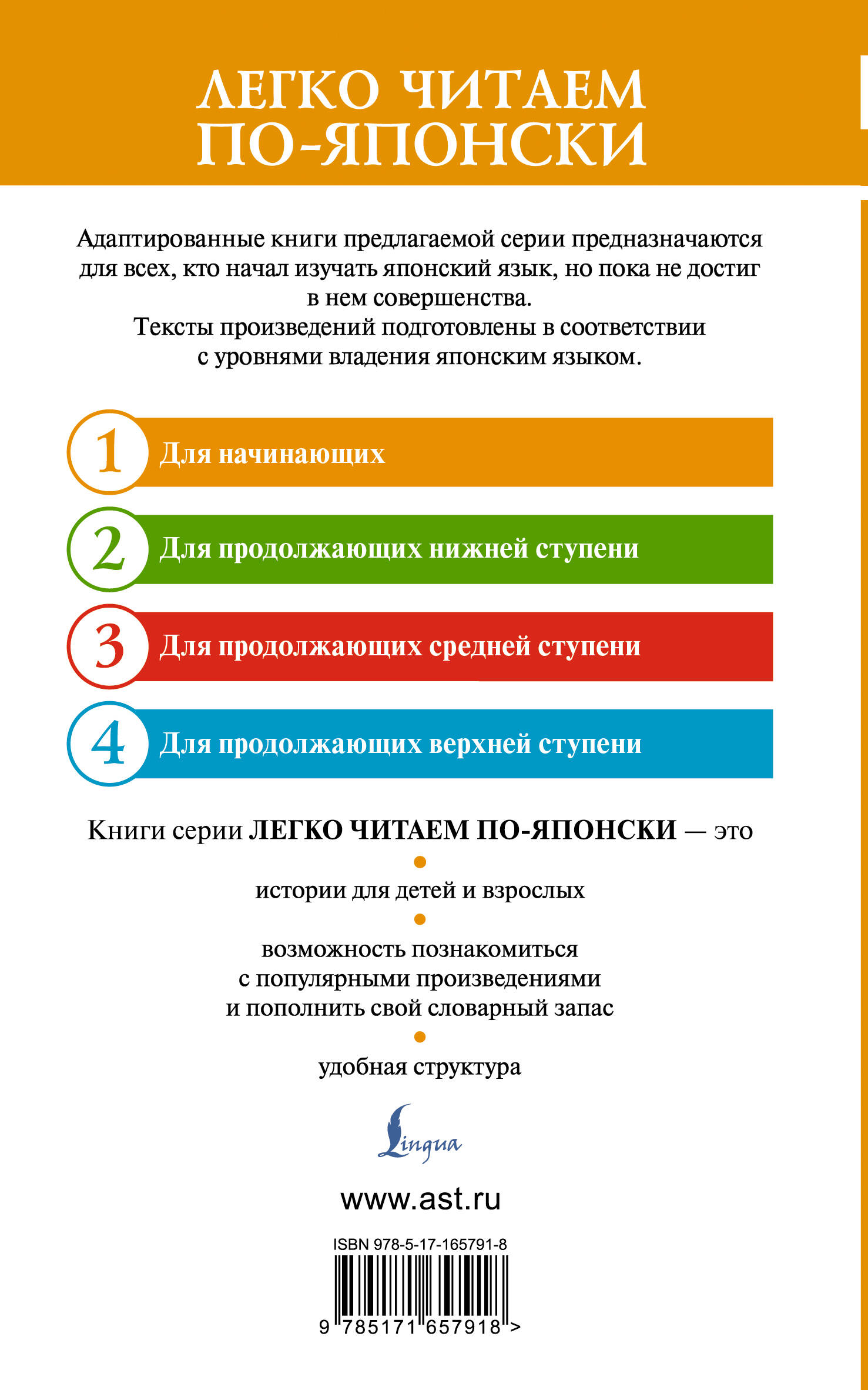 Учите японский, но не читаете в оригинале, потому что боитесь ничего не понять? С книгой "Самые лучшие японские сказки" вы легко сможете прочитать сказки на японском языке. Каждая сказка снабжена переводом на русский, словариком и упражнениями, которые позволят повторить уже изученный материал и закрепить новый. Книга подойдет всем, кто начал или продолжает учить японский язык и стремится читать на японском языке.| Издательство | Издательство "АСТ" |