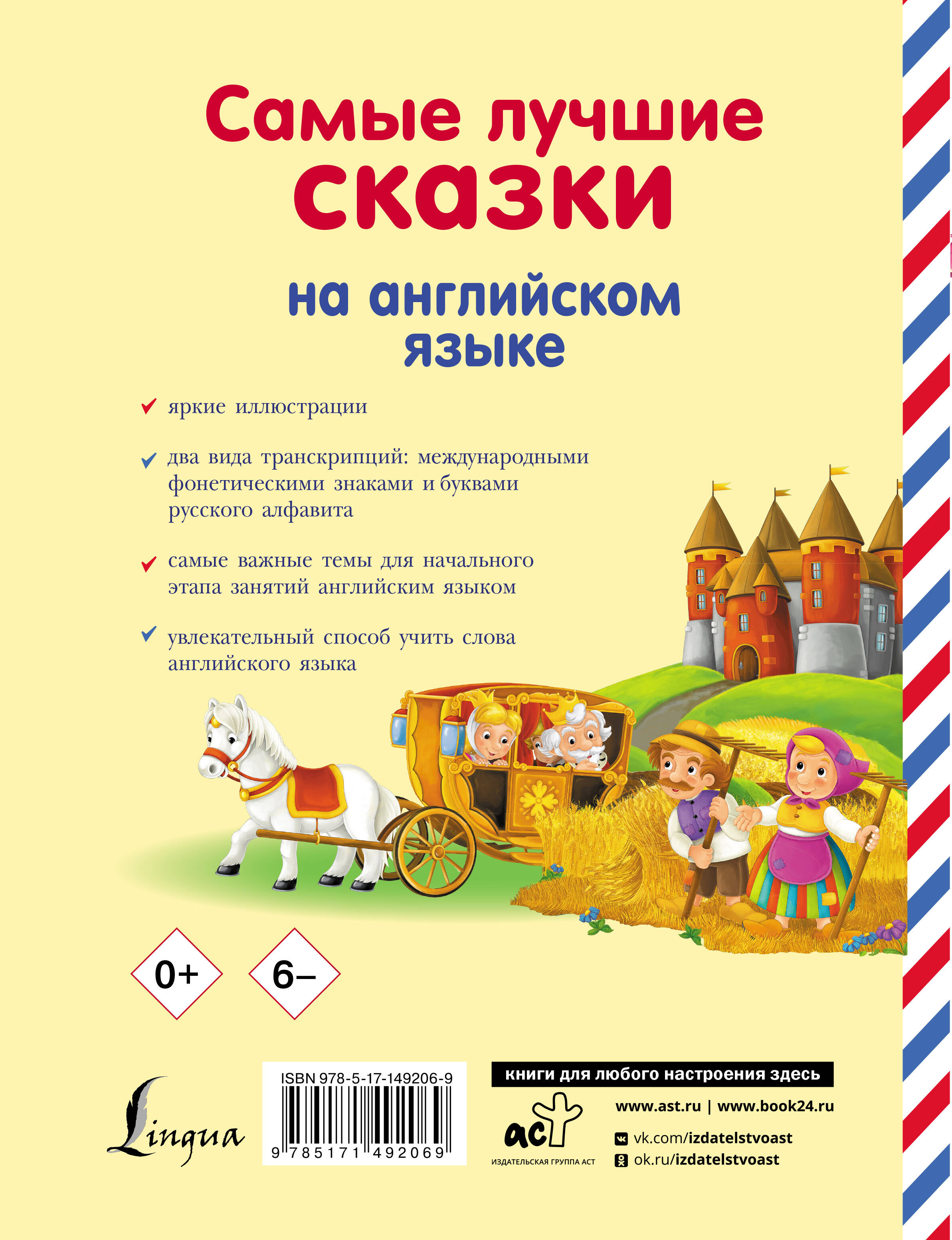 «Самые лучшие сказки на английском языке» - это максимально увлекательный способ учить английские слова! Читателей ждут: - яркие иллюстрации; - два вида транскрипций: международными фонетическими знаками и буквами русского алфавита; - самые важные темы для начального этапа занятий английским языком.