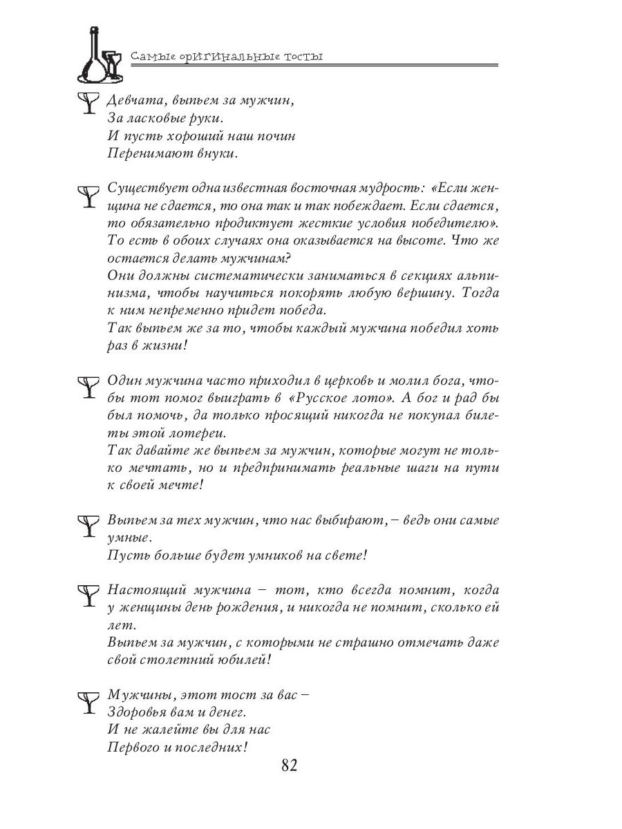 Эта книга поможет вам не попасть впросак и произнести замечательные поздравления на любом празднике, будь то торжество по поводу свадьбы или празднование 23-го Февраля. Она станет вашей замечательной помощницей, благодаря которой вы будете желанным гостем на любом вечере и удивите знакомых своей эрудицией и красноречивостью.| Издательство | Т8 RUGRAM |