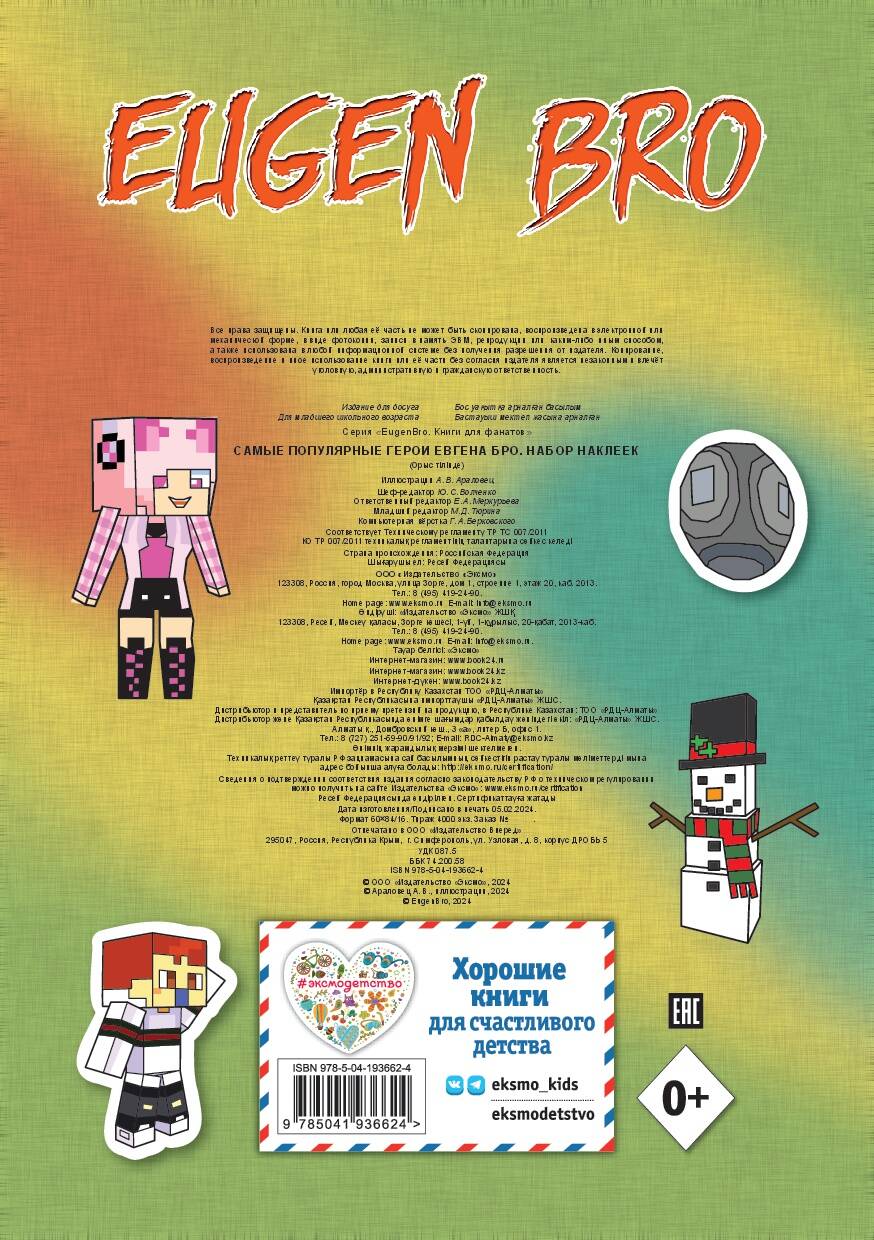 Ты обожаешь «Майнкрафт» и кубический мир блогера ЕвгенБро? Теперь любимые герои могут быть всегда с тобой! В этом наборе представлены наклейки по мотивам пиксельной вселенной ЕвгенБро! Ты можешь приклеить их на любимые тетрадки, скетчбуки, блокноты и туда, куда захочешь! Прикольные персонажи целый день будут радовать тебя и поднимать настроение. А если твои друзья тоже любят Minecraft и смотрят видео ЕвгенБро, то набор наклеек станет для них крутым подарком на день рождения и любой другой праздник. Позволь пиксельному миру всегда быть рядом!| Издательство | ООО "Издательство "Эксмо" |