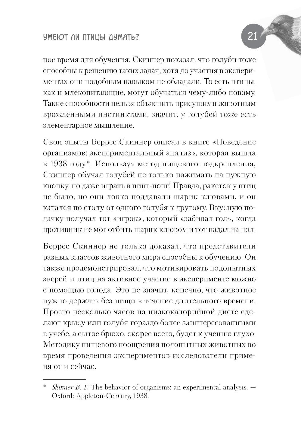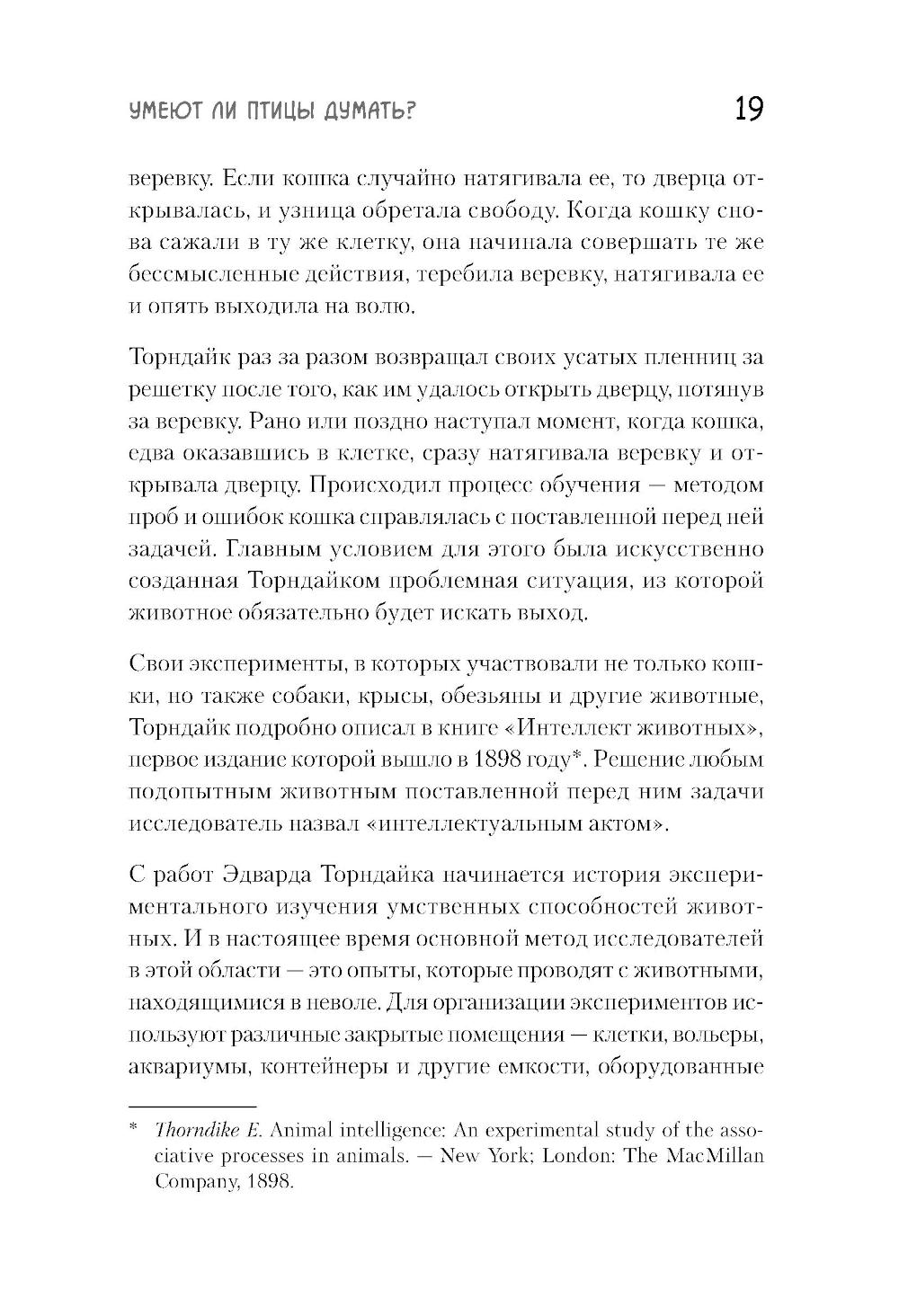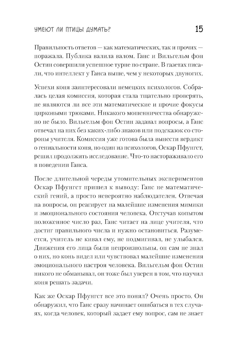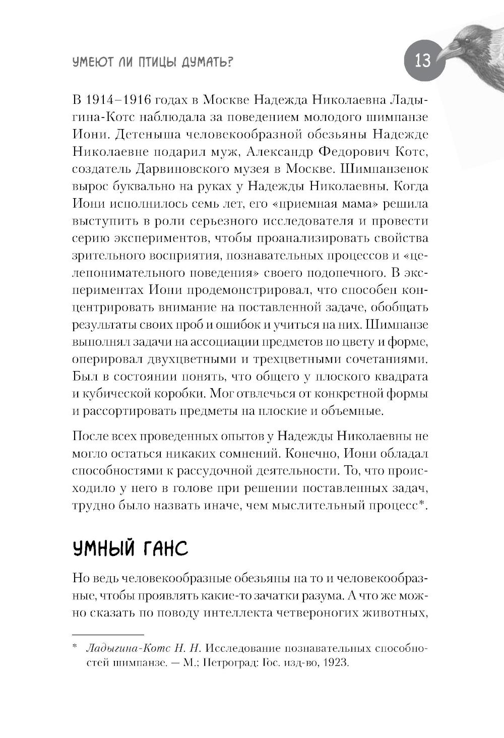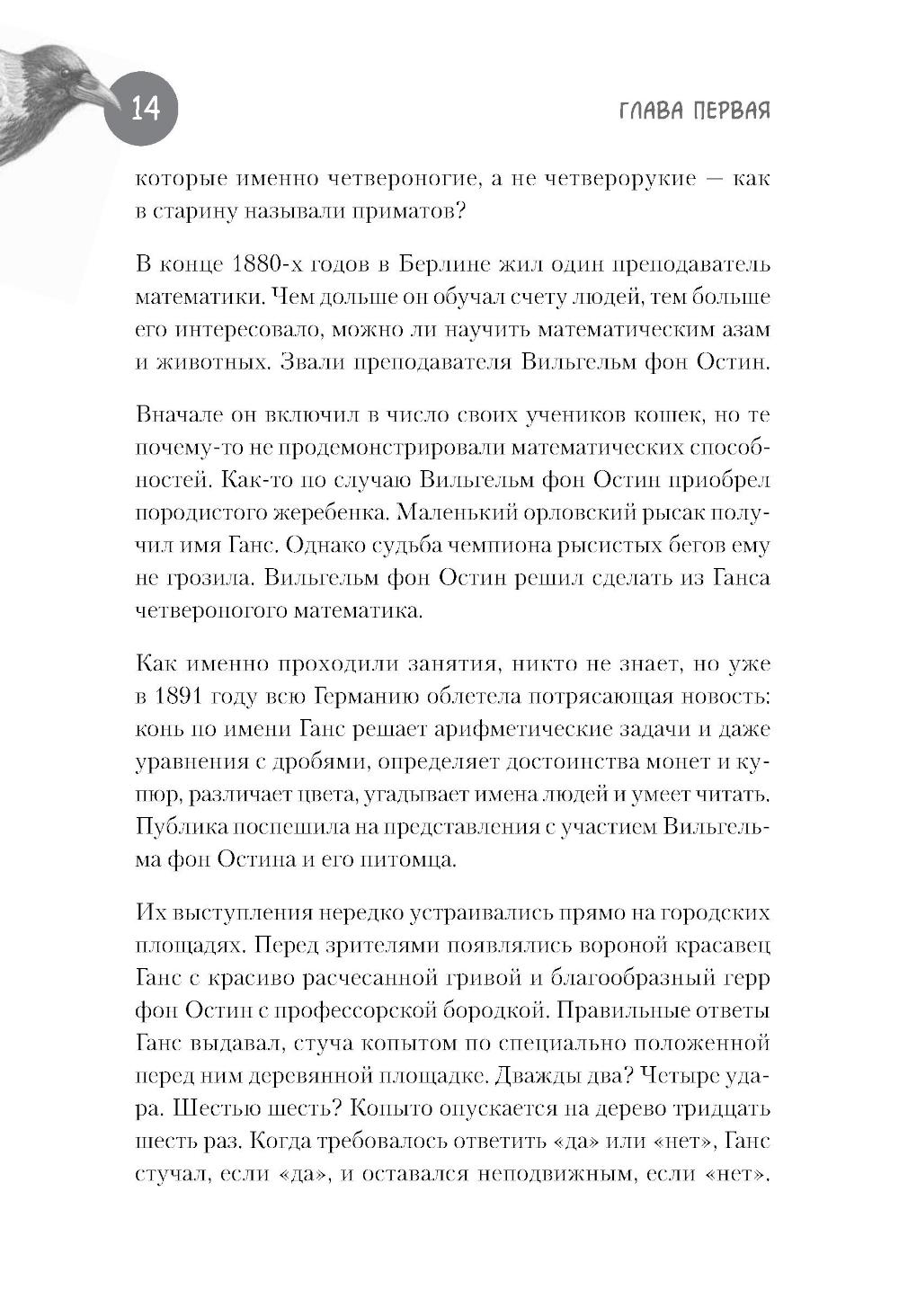 Про особую сообразительность ворон знают все. Многие не раз наблюдали, как каркающая вредина выпотрошила урну, ограбила кота, обворовала птичью кормушку, расстегнула молнию на рюкзаке, стащила из-под носа ключи или кусок пиццы. А многим знакома их слаженная работа в небольших «криминальных группировках» и склонность к невинным развлечениям типа катания с горки и качания на проводах. Неужели эти птицы действительно настолько умны, что порой кажутся не глупее нас с вами? Или, может быть, их поведение - это просто результат работы каких-то генетических программ или сложных инстинктов? Можем ли мы всерьез говорить о вороньем интеллекте или это только наивные домыслы дилетантов? Научно-популярная книга Юлии Дунаевой отвечает на эти вопросы, в легкой и занимательной форме рассказывая читателям о результатах научных исследований специалистов, которые изучают особенности элементарного мышления ворон и других птиц. В разных научных лабораториях мира, в том числе и в нашей стране, экспериментаторы предъявляют карлушам разнообразные задачки на сообразительность и потом тщательно анализируют полученные результаты. К каким же выводам приходят ученые, пытающиеся прочитать вороньи мысли?| Издательство | Питер |
