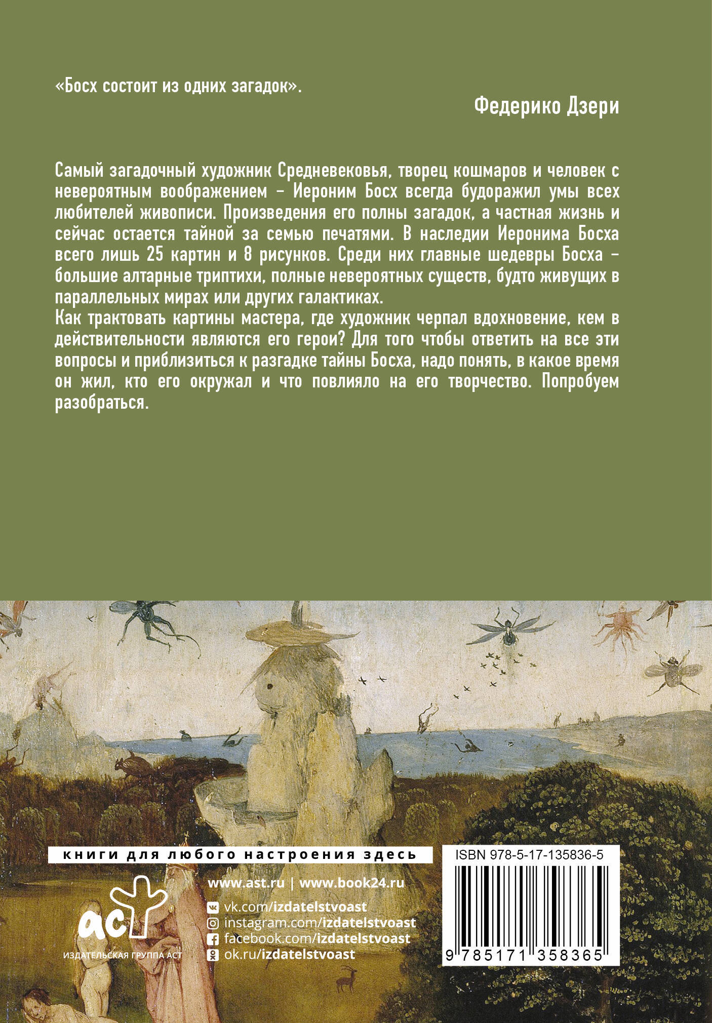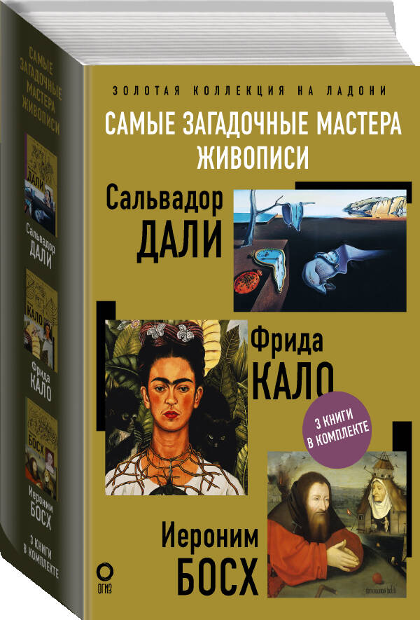 Комплект состоит из 3-х книг о самых загадочных мастерах живописи. Сальвадор Дали Компактный иллюстрированный гид по творчеству Сальвадора Дали размером с ладонь подарит вам сюрреалистические впечатления от знакомства с творчеством художника. "Еще в раннем детстве я приобрел порочную привычку считать себя не таким, как все, и вести себя иначе, чем прочие смертные. Как оказалось, это золотая жила!" - Сальвадор Дали. Босх Самый загадочный художник Средневековья, творец кошмаров и человек с невероятным воображением - Иероним Босх всегда будоражил умы всех любителей живописи. Произведения его полны загадок, а частная жизнь и сейчас остается тайной за семью печатями. В наследии Иеронима Босха всего лишь 25 картин и 8 рисунков. Среди них главные шедевры Босха, - большие алтарные триптихи, полные невероятных существ, будто живущих в параллельных мирах или других галактиках. Загадочная жизнь великого живописца (биографических сведений о Босхе сохранилось очень мало), была причиной в наше время немалого количества литературных и исторических спекуляций. Фрида Кало Книга известных итальянских историков искусства Акилле Бонито Оливы и Марты Заморы рассказывает о нелегком жизненном пути и творчестве знаменитой мексиканской художницы Фриды Кало. Книга "Фрида Кало" поможет читателям погрузиться в яркий и шокирующий мир одной из самых известных художниц в истории. Читатели раскроют для себя подлинные смыслы, стоящие за символами и аллегориями, преобладающими в живописи Кало и уходящими корнями глубоко в мексиканские традиции, мифологию, буддизм. Вы узнаете, как отношения художницы с Диего, богатые на измены и расставания, а также ее физическое и эмоциональное состояние, находили свое причудливое воплощение на многочисленных полотнах. Картины, выполненные в оригинальном эклектическом стиле, повторяющем форму наивного искусства с нотками сюрреализма, написанные яркими красками, стали настоящим символом искусства, моды и идеи свободы слабого пола, позаимствованной у феминизма.| Издательство | ИЗДАТЕЛЬСТВО "АСТ" |