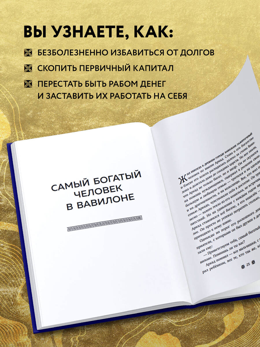 10 всемирно известных притч, которые полностью меняют ваше мышление. Оригинальная версия главной книги о богатстве теперь в самом полном и благозвучном переводе. Все, что было написано о накоплении капитала после «Самого богатого человека в Вавилоне», лишь повторяет и развивает идеи Джона Клейсона, но принципиально нового не добавляет. Роберт Киосаки, Наполеон Хилл, Бодо Шефер - все они черпали мудрость из этого бестселлера. Книга переведена на 32 языка и издана в 56 странах мира. Продана тиражом больше 100 миллионов экземпляров (точный подсчет затруднен из-за невероятного количества переизданий). Если вы ищете одну, самую полезную книгу о богатстве, это без сомнения «Самый богатый человек в Вавилоне». В ней автор с помощью увлекательных историй объясняет, как: • безболезненно избавиться от долгов, во много раз превышающих ежемесячный доход; • скопить первичный капитал, который ляжет в основу будущего благосостояния; • перестать быть рабом денег и заставить их работать на себя; • заслужить уважение и глубочайшее почтение окружающих.| Издательство | ООО "Издательство "Эксмо" |