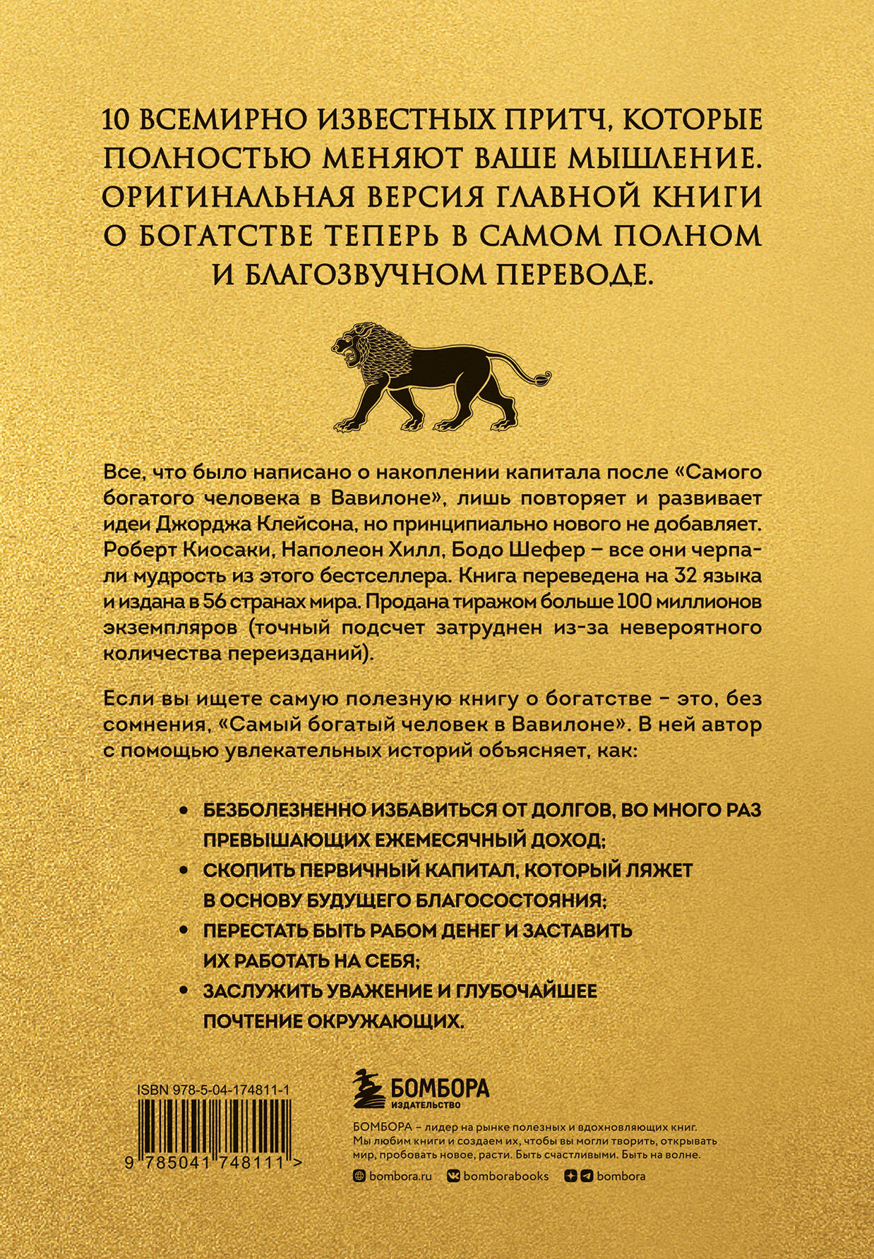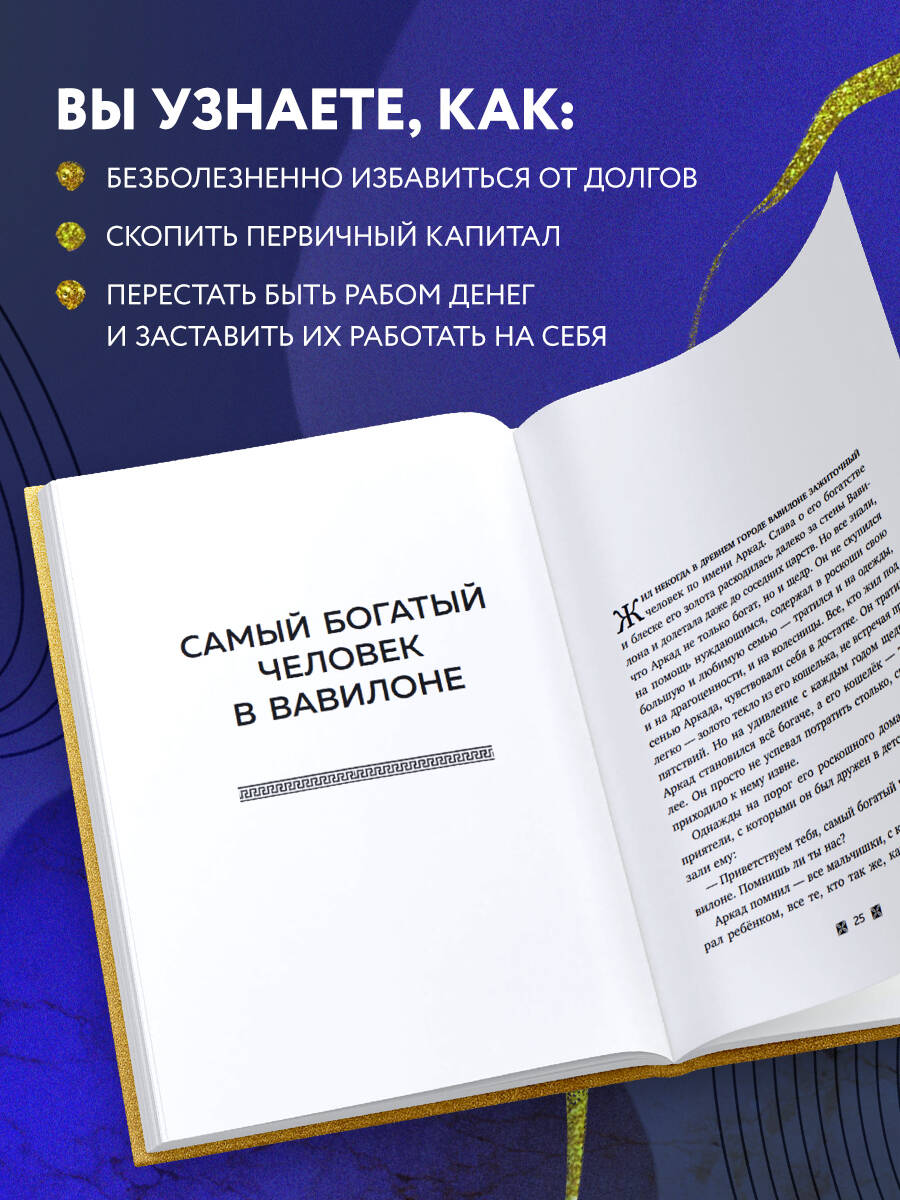 10 всемирно известных притч, которые полностью меняют ваше мышление. Оригинальная версия главной книги о богатстве теперь в самом полном и благозвучном переводе. Все, что было написано о накоплении капитала после «Самого богатого человека в Вавилоне», лишь повторяет и развивает идеи Джона Клейсона, но принципиально нового не добавляет. Роберт Киосаки, Наполеон Хилл, Бодо Шефер - все они черпали мудрость из этого бестселлера. Книга переведена на 32 языка и издана в 56 странах мира. Продана тиражом больше 100 миллионов экземпляров (точный подсчет затруднен из-за невероятного количества переизданий). Если вы ищете одну, самую полезную книгу о богатстве, это без сомнения «Самый богатый человек в Вавилоне». В ней автор с помощью увлекательных историй объясняет, как: • безболезненно избавиться от долгов, во много раз превышающих ежемесячный доход; • скопить первичный капитал, который ляжет в основу будущего благосостояния; • перестать быть рабом денег и заставить их работать на себя; • заслужить уважение и глубочайшее почтение окружающих.| Издательство | ООО "Издательство "Эксмо" |