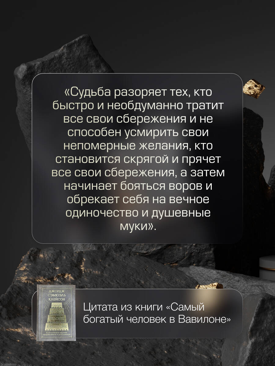 Десять всемирно известных "Вавилонских притч" Сэмюэля Клейсона откроют вам двери к финансовому успеху. Великолепное подарочное издание в дорогом оформлении под кожу с золотым тиснением. Новый точный и максимально полный перевод, который донесет все нюансы этого величайшего произведения. Обязательное чтение для каждого, кто хочет приумножить свое благосостояние, помощник, с которым начинали свой путь тысячи богатых и знаменитых. Эта книга будет поддерживать вас на протяжении всей жизни и станет вашим помощником на пути к финансовой свободе!| Издательство | Издательство "АСТ" |