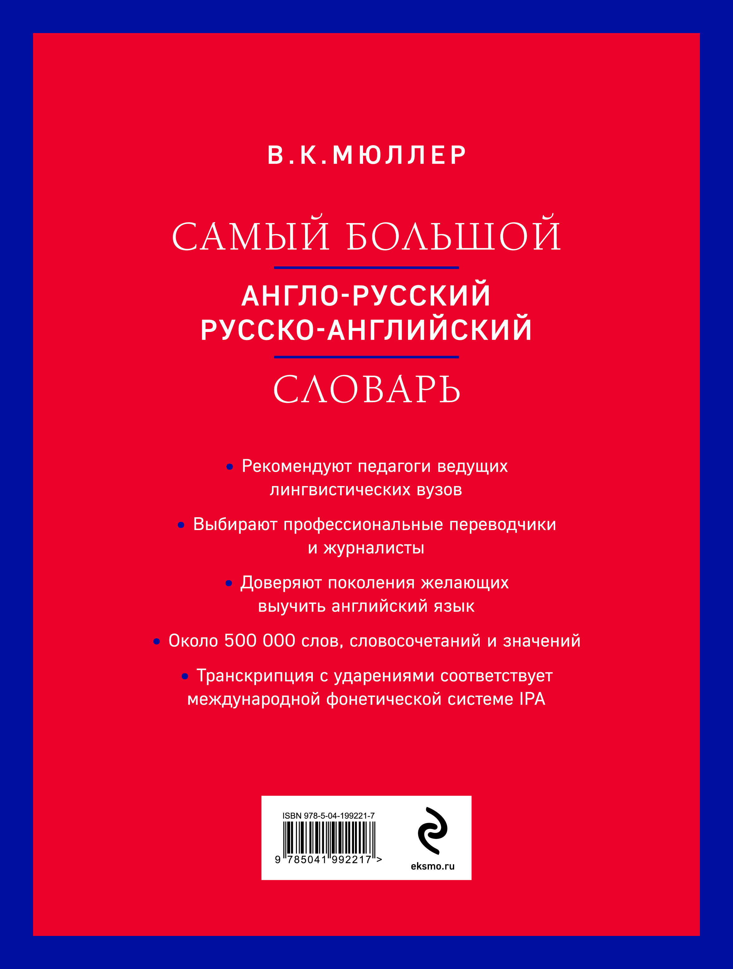Как найти самый лучший англо-русский словарь? Поделимся лайфхаком - выбирайте проверенный временем и профессионалами. Словарь В. К. Мюллера многие годы рекомендуют педагоги лучших вузов и предпочитают специалисты, ему доверяют изучающие английский язык. Это издание переработано и актуализировано, дополнено лексикой из научных, политических и других сфер жизни. Две части - англо-русская и русско-английская - содержат около 500 000 слов, словосочетаний и значений. Для удобства читателей и исключения ошибок в произношении дана транскрипция с ударениями, соответствующая международной фонетической системе IPA.| Издательство | ООО "Издательство "Эксмо" |