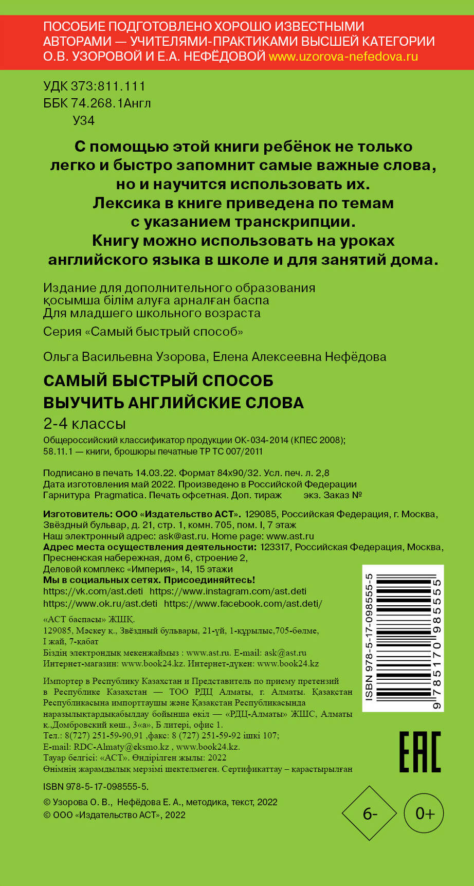 Пособие для быстрого изучения и повторения основных правил английского языка за курс начальной школы.| Издательство | ИЗДАТЕЛЬСТВО "АСТ" |