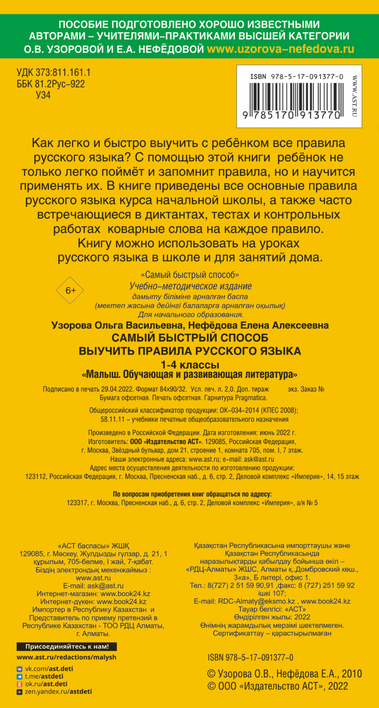Аннотация: Самый быстрый способ выучить правила русского языка. 1-4 классы