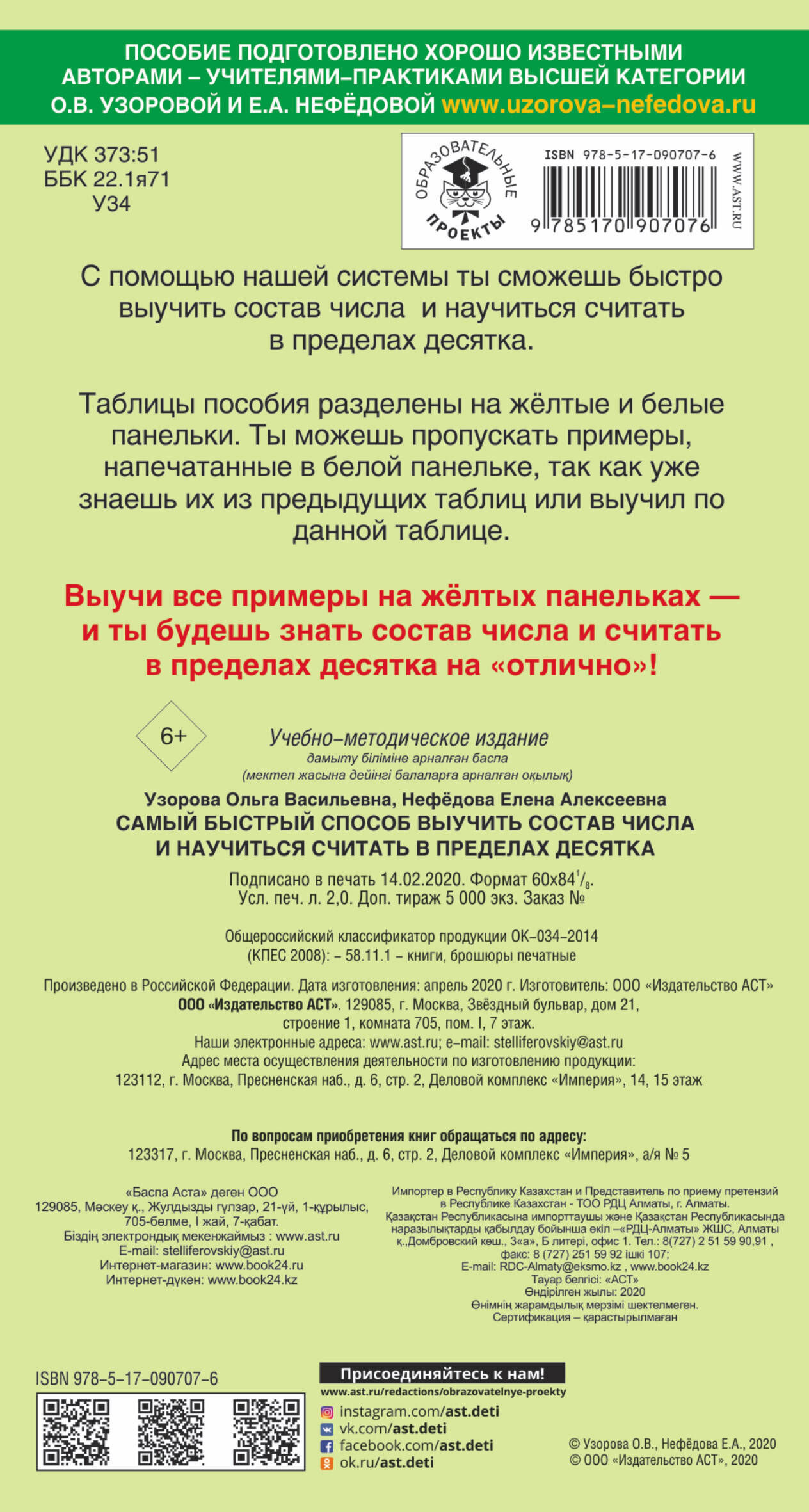 Пособие известных педагогов-практиков, авторов самых издаваемых учебников и учебных пособий в России О.В. Узоровой и Е.А. Нефёдовой поможет ребенку быстро выучить состав числа и научиться считать в пределах десятка.| Издательство | Издательство "АСТ" |