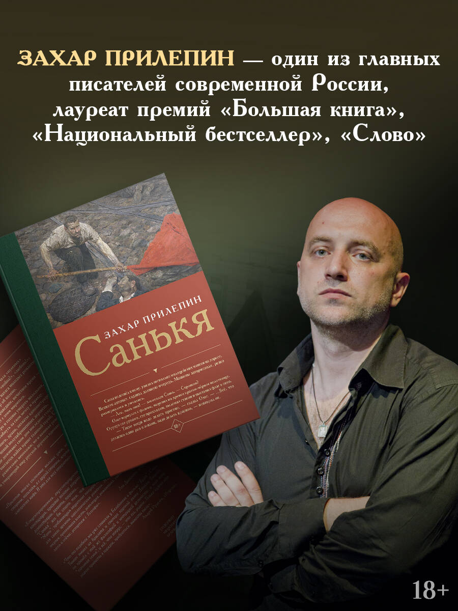 Захар Прилепин - прозаик, публицист, музыкант, обладатель премий "Национальный бестселлер", "СуперНацБест" и "Ясная Поляна". Автор романов "Обитель", "Черная обезьяна", "Патологии", "Некоторые не попадут в ад", сборников рассказов "Грех", "Восьмерка", "Семь жизней", "Ополченский романс" и "Ботинки, полные горячей водкой". Тихое воскресное утро в Москве начала "нулевых" взрывается криками "революция!", "война!", "любовь!": это марширует "Союз созидающих", ватага молодых романтиков, ломающих мир об колено. Они живут в дурное, неправедное, нечестное время - и не хотят с этим мириться. Они живут быстро и готовы умереть молодыми, готовы погибнуть за свои мечту и правду. Шумные митинги, драки, захваты администраций, - и покой полузаброшенных деревень, где доживают свои дни последние старики и где пытается найти приют главный герой, Санькя, - разительно непохожи; но и наивная революция, и умирающий мир русской деревни одинаково обречены. "Прилепин описал состояние молодых умов, этот радикализм, нигилизм, жертвенность во имя идеи, во имя имперского мифа. И это для всех открытие". Александр Проханов "Концентрированная, двухсотпроцентная жизнь: вольница, "бункер", конспирация, красивые волевые девушки, драки с ментами и бандитами, демонстрации, захваты, погромы… "Санькя" мог бы стать тем, чем стала сто лет назад горьковская "Мать", - пробивающим защитные панцири здравого смысла, центральным для своего времени идеологическим романом. Молодая партия, молодая энергия, прогнившая власть, революция, романтика, евангельские события здесь и сейчас, репортаж с Голгофы". Лев Данилкин, "Афиша" "Что-то подобное мы уже слышали у Балабанова в фильме "Брат". Саша Тишин вышел из бушлата и свитера крупной вязки Данилы Багрова, он пришел с той же философией и интуицией цельности: у него есть "огромная семья" и всё, что вокруг, - это его, родное. Только нужно это родное привести в порядок, прибраться, вымести пыль". Андрей Рудалев, ИА REGNUM| Издательство | Издательство "АСТ" |