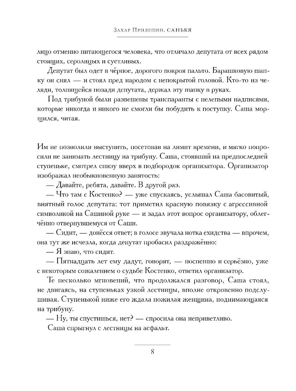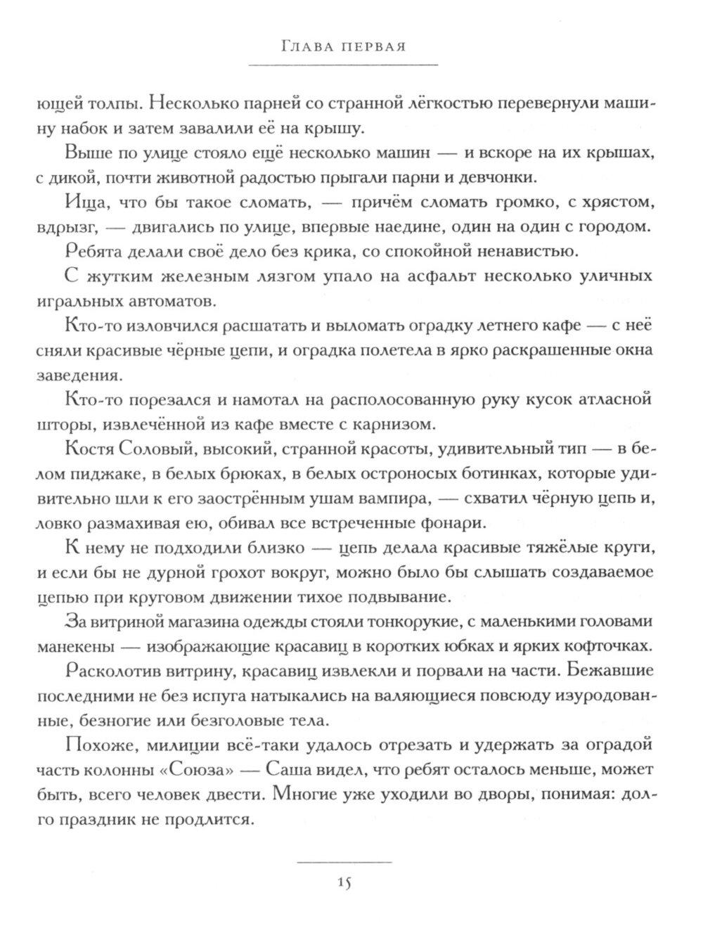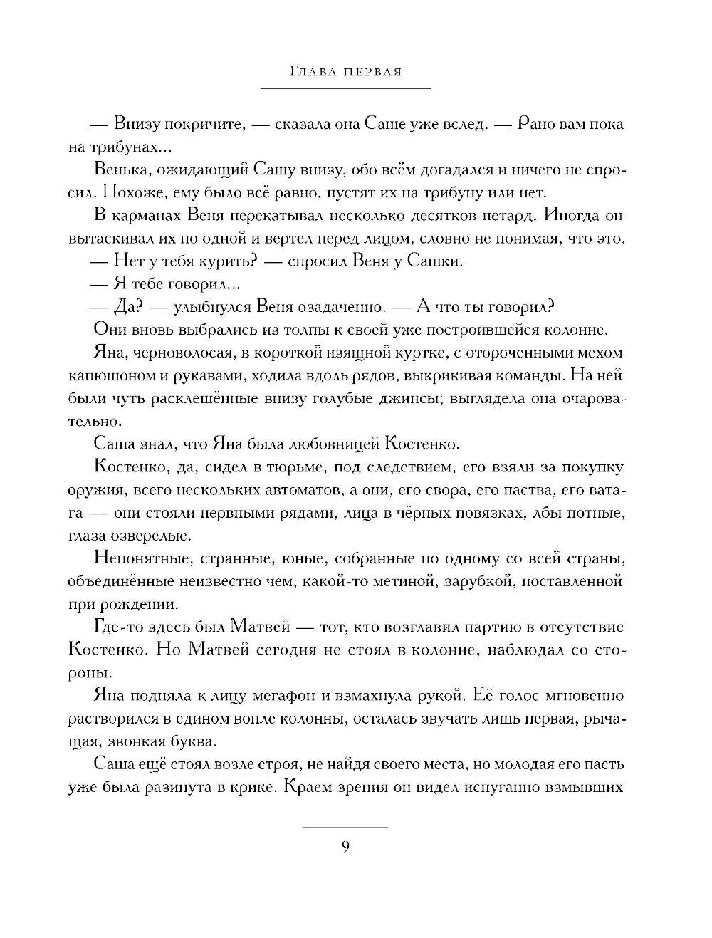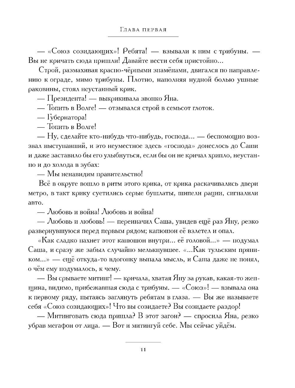 Захар Прилепин - прозаик, публицист, музыкант, обладатель премий «Национальный бестселлер», «СуперНацБест» и «Ясная Поляна». Автор романов «Обитель», «Черная обезьяна», «Патологии», «Некоторые не попадут в ад», сборников рассказов «Грех», «Восьмерка», «Семь жизней», «Ополченский романс» и «Ботинки, полные горячей водкой». Тихое воскресное утро в Москве начала «нулевых» взрывается криками «революция!», «война!», «любовь!»: это марширует «Союз созидающих», ватага молодых романтиков, ломающих мир об колено. Они живут в дурное, неправедное, нечестное время - и не хотят с этим мириться. Они живут быстро и готовы умереть молодыми, готовы погибнуть за свои мечту и правду. Шумные митинги, драки, захваты администраций, - и покой полузаброшенных деревень, где доживают свои дни последние старики и где пытается найти приют главный герой, Санькя, - разительно непохожи; но и наивная революция, и умирающий мир русской деревни одинаково обречены.| Издательство | АСТ |