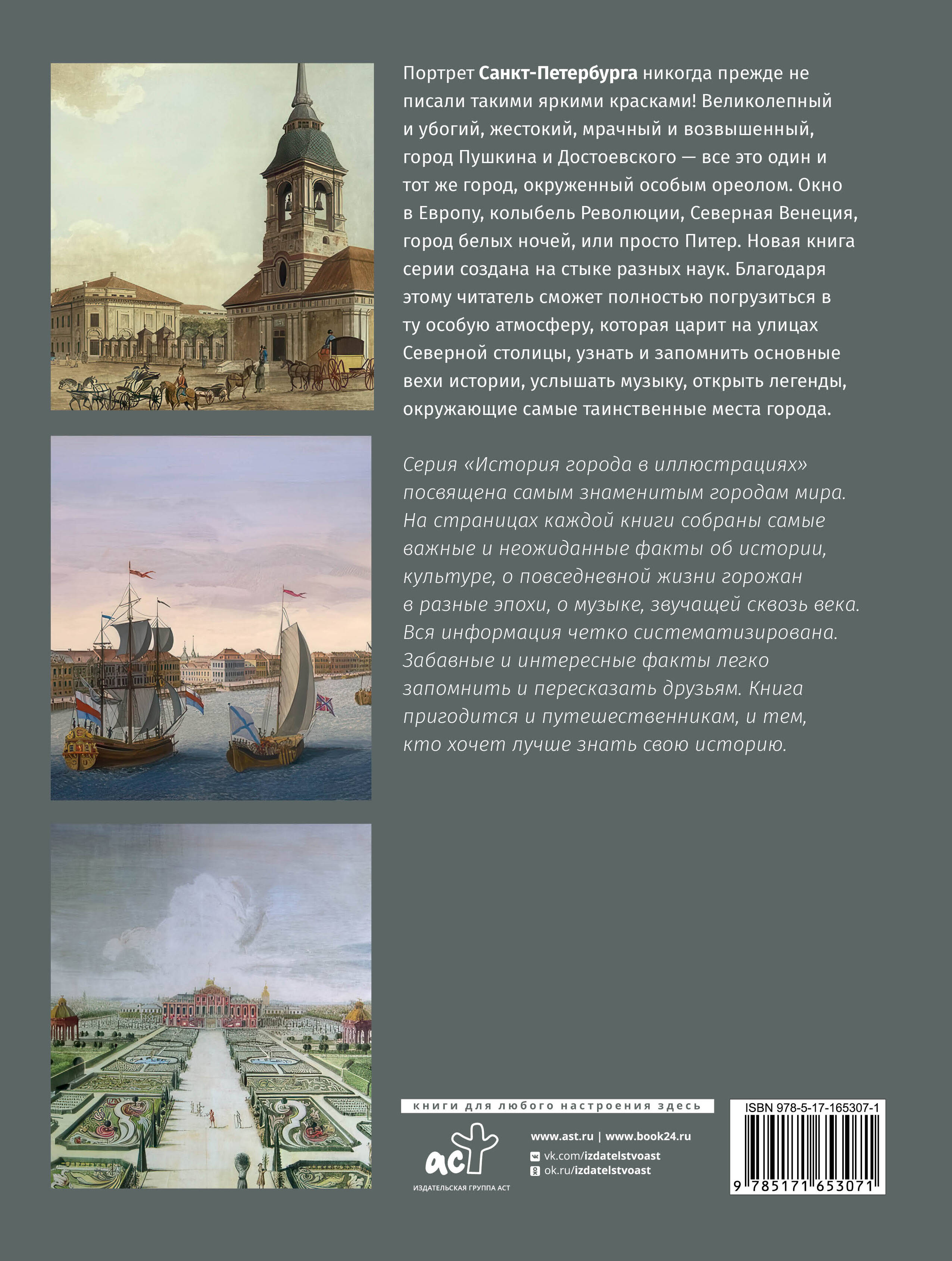 Портрет Санкт-Петербурга никогда прежде не писали такими яркими красками! Велико- лепный и убогий, жестокий, мрачный и возвышенный, город Пушкина и Достоевского - все это один и тот же город, окруженный особым ореолом. Окно в Европу, колыбель Революции, Северная Венеция, Город белых ночей или просто Питер. Новая книга серии создана на сты- ке разных наук. Благодаря этому читатель сможет полностью погрузится в ту особую атмос- феру, которая царит на улицах Северной столицы, узнать и запомнить основные вехи в исто- рии, услышать музыку, открыть легенды, окружающие самые таинственные места города. Серия "История города в иллюстрациях" посвящена самым знаменитым городам мира. На страницах каждой книги собраны самые важные и неожиданные факты об истории, куль- туре, о повседневной жизни горожан в разные эпохи, о музыке, звучащей сквозь века. Вся информация четко систематизирована. Забавные и интересные факты легко запомнить и пе- ресказать друзьям. Книга пригодится и путешественникам, и тем, кто хочет лучше знать свою историю.| Издательство | Издательство "АСТ" |