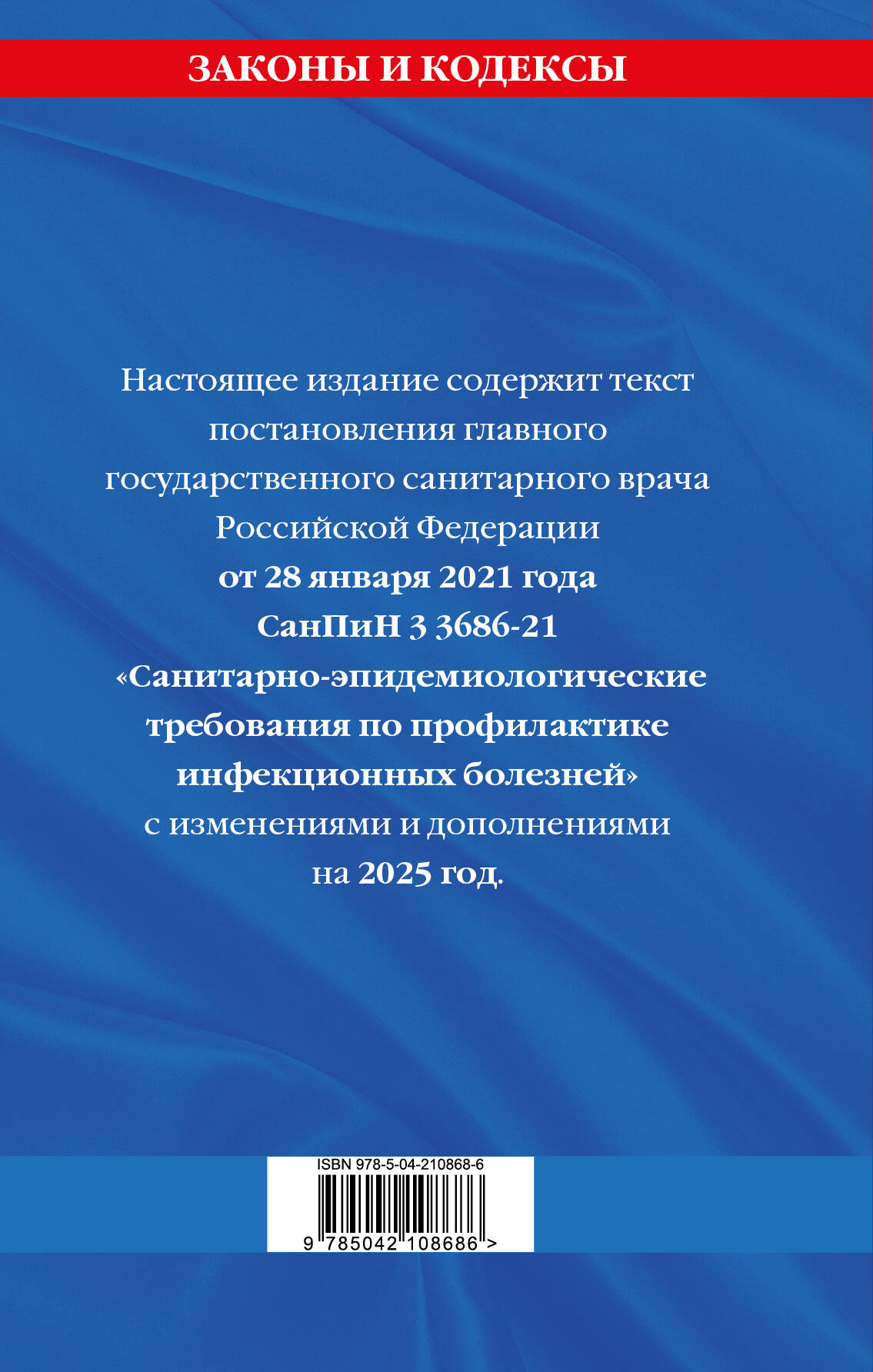 Аннотация: СанПиН 3 3686-21. Санитарно-эпидемиологические требования по профилактике инфекционных болезней на 2025 год