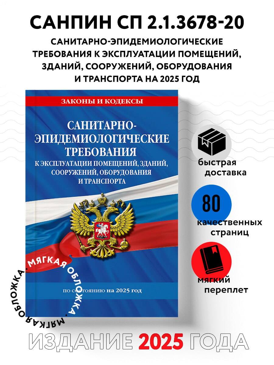 СанПин СП 2.1.3678-20 "Санитарно-эпидемиологические требования к эксплуатации помещений, зданий, сооружений, оборудования и транспорта" на 2025 год
