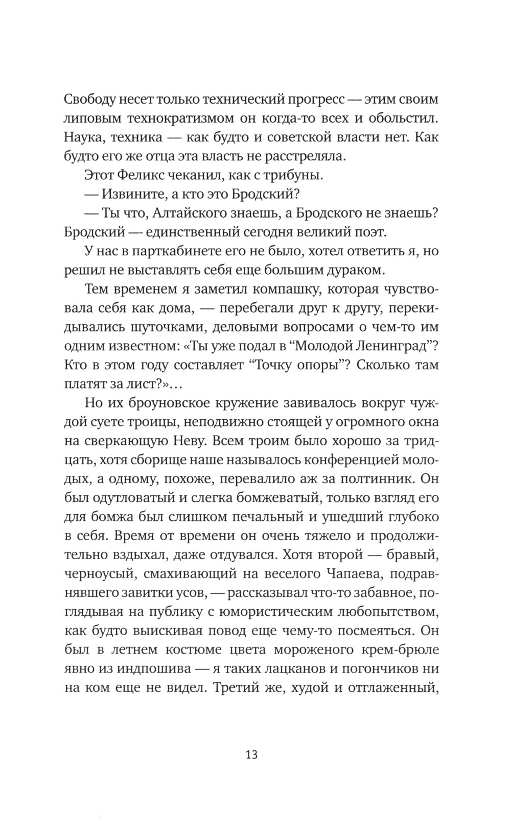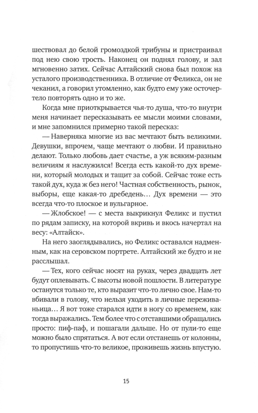 Провинциальный мальчишка открывает в себе дар видеть мир чужими глазами и уже взрослым человеком попадает в петербургский Дом на набережной напротив Спаса на Крови. Этот дом тоже стоит на крови и страданиях живших там советских писателей, однако безжалостный обличитель Феликс называет этот дом Курятником на Канаве, а историю его знаменитых обитателей изображает историей трусости и приспособленчества. Но главному герою, которому приходится пройти через их страдания в фантасмагорическом мире, советская литература предстает в образе альбатроса в курятнике. В романе много ярких зарисовок из прошлого и настоящего, есть и жизнь, и слезы, и любовь, есть потрясение отца, впервые увидевшего взрослого сына, есть улетевший памятник советской эпохе, роман сочетает бытовую достоверность и увлекательность с сильным символическим и фантасмагорическим началом. Что дороже: правда или милосердие? Роман Мелихова при всей его горькой правде не беспощадный трибунал, но поиск понимания.| Издательство | Время |