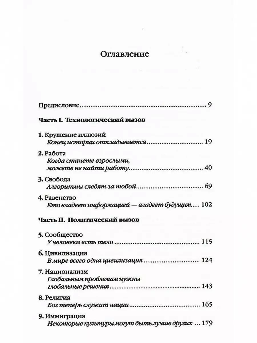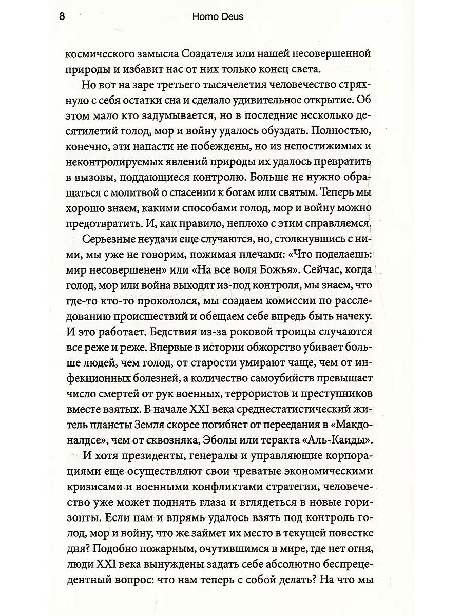 В комплект вошли сразу три субербестселлера Юваля Ноя Харари: "Sapiens. Краткая история человечества" Сто тысяч лет назад Homo sapiens был одним из как минимум шести видов человека, живших на этой планете, - ничем не примечательным животным, которое играло в экосистеме роль не более значительную, чем гориллы, светлячки или медузы. Но около семидесяти тысяч лет назад загадочное изменение когнитивных способностей Homo sapiens превратило его в хозяина планеты и кошмар экосистемы. Как человек разумный сумел покорить мир? Что стало с другими видами человека? Когда и почему появились деньги, государства и религия? Как возникали и рушились империи? Почему почти все общества ставили женщин ниже мужчин? Как наука и капитализм стали господствующими вероучениями современной эры? Становились ли люди с течением времени счастливее? Какое будущее нас ожидает? Юваль Харари показывает, как ход истории формировал человеческое общество и действительность вокруг него. Его книга прослеживает связь между событиями прошлого и проблемами современности и заставляет читателя пересмотреть все устоявшиеся представления об окружающем мире. "Homo Deus. Краткая история будущего" В своей первой книге, ставшей всемирной сенсацией «Sapiens. Краткая история человечества», Юваль Харари рассказал, как Человек Разумный пришел к господству над нашей планетой. «Homo Deus» является своего рода продолжением темы - попыткой заглянуть в будущее. Что произойдет, когда Google и Facebook будут лучше, чем мы сами, знать наши вкусы, личные симпатии и политические предпочтения? Что будут делать миллиарды людей, вытесненных компьютерами с рынка труда и образовавших новый, бесполезный класс? Как воспримут религии генную инженерию? Каковы будут последствия перехода полномочий и компетенций от живых людей к сетевым алгоритмам? Что должен предпринять человек, чтобы защитить планету от своей же разрушительной силы?.. Главное сейчас, полагает Харари, - осознать, что мы находимся на перепутье, и понять, куда ведут простирающиеся перед нами пути. Мы не в силах остановить ход истории, но можем выбрать направление движения. «21 урок для XXI века» Это третья книга Юваля Харари, автора изданных на 50 языках мира бестселлеров «Sapiens. Краткая история человечества» и «Homo Deus. Краткая история будущего». В ней сорокатрехлетний профессор истории, которого называют самым ярким мыслителем нашего времени, обратился к проблемам сегодняшнего дня. Что происходит в современном мире и каков глубинный смысл этих событий? Почему либеральная демократия переживает кризис? Как быть с эпидемией фейковых новостей? Как не стать рабами компьютерных алгоритмов? Удастся ли предотвратить экологический коллапс? Действительно ли происходит возврат к религии? Как бороться с терроризмом? Будет ли новая мировая война? От того, сумеет ли человечество найти адекватные ответы на вызовы, стоящие перед ним в XXI веке, зависит, будет ли существовать планета Земля и ее обитатели в следующем столетии.