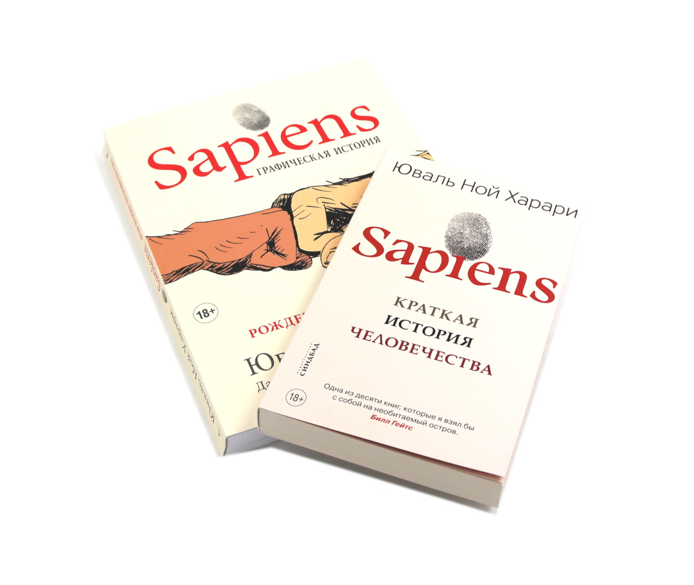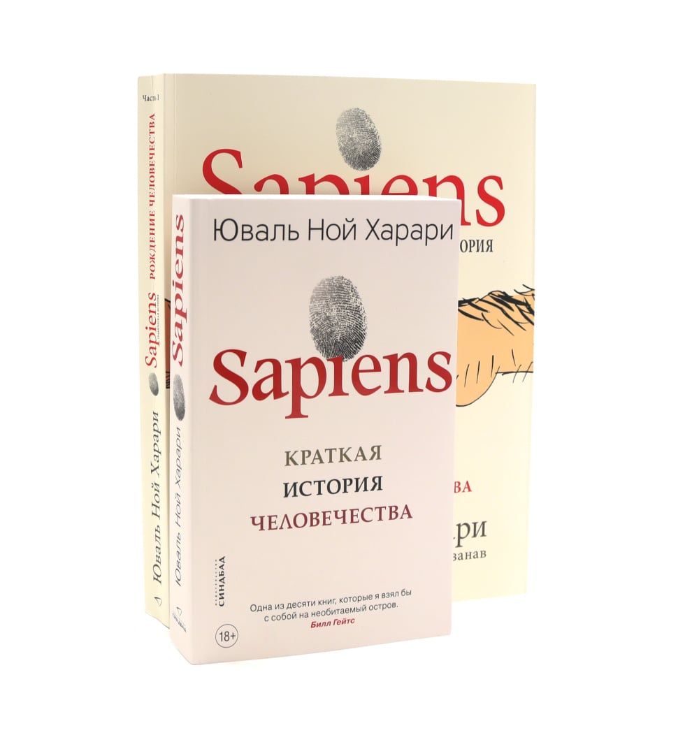 Комплект из 2 книг: «Sapiens Графическая история. Часть 1. Рождение человечества» Это ошеломляющая история о том, как ничем не примечательное млекопитающие стало человеком, который научился расщеплять атом, летать на Луну, манипулировать генетическим кодом и обрел абсолютную власть над планетой. В этом захватывающем дух путешествии в глубокие дерби истории вашим гидом будет Юваль Ной Харари, а компанию вам составят Первобытный Билл, доктор Фантазия и детектив Лопес. Иллюстрированный формат позволит взглянуть на события нашего далекого прошлого другими глазами: эволюция человека представлена через телевизионное реалити-шоу, первая встреча сапиенсов и неандертальцев осмысляется через шедевры современного искусства, а исчезновение с лица Земли мамонтов и саблезубых кошек становится предметом расследования в кинодетективе. Так об истории человечества не рассказывал еще никто. «Sapiens. Краткая история человечества» Сто тысяч лет назад Homo sapiens был одним из как минимум шести видов человека, живших на этой планете, - ничем не примечательным животным, которое играло в экосистеме роль не большую, чем гориллы, светлячки или медузы. Но около семидесяти тысяч лет назад загадочное изменение когнитивных способностей Homo sapiens превратило его в хозяина планеты и кошмар экосистемы. Как человек разумный сумел покорить мир? Что стало с другими видами человека? Когда и почему появились деньги, государства и религия? Как возникали и рушились империи? Почему почти все общества ставили женщин ниже мужчин? Как наука и капитализм стали господствующими вероучениями современной эры? Становились ли люди с течением времени счастливее? Какое будущее нас ожидает?| Издательство | Синдбад |