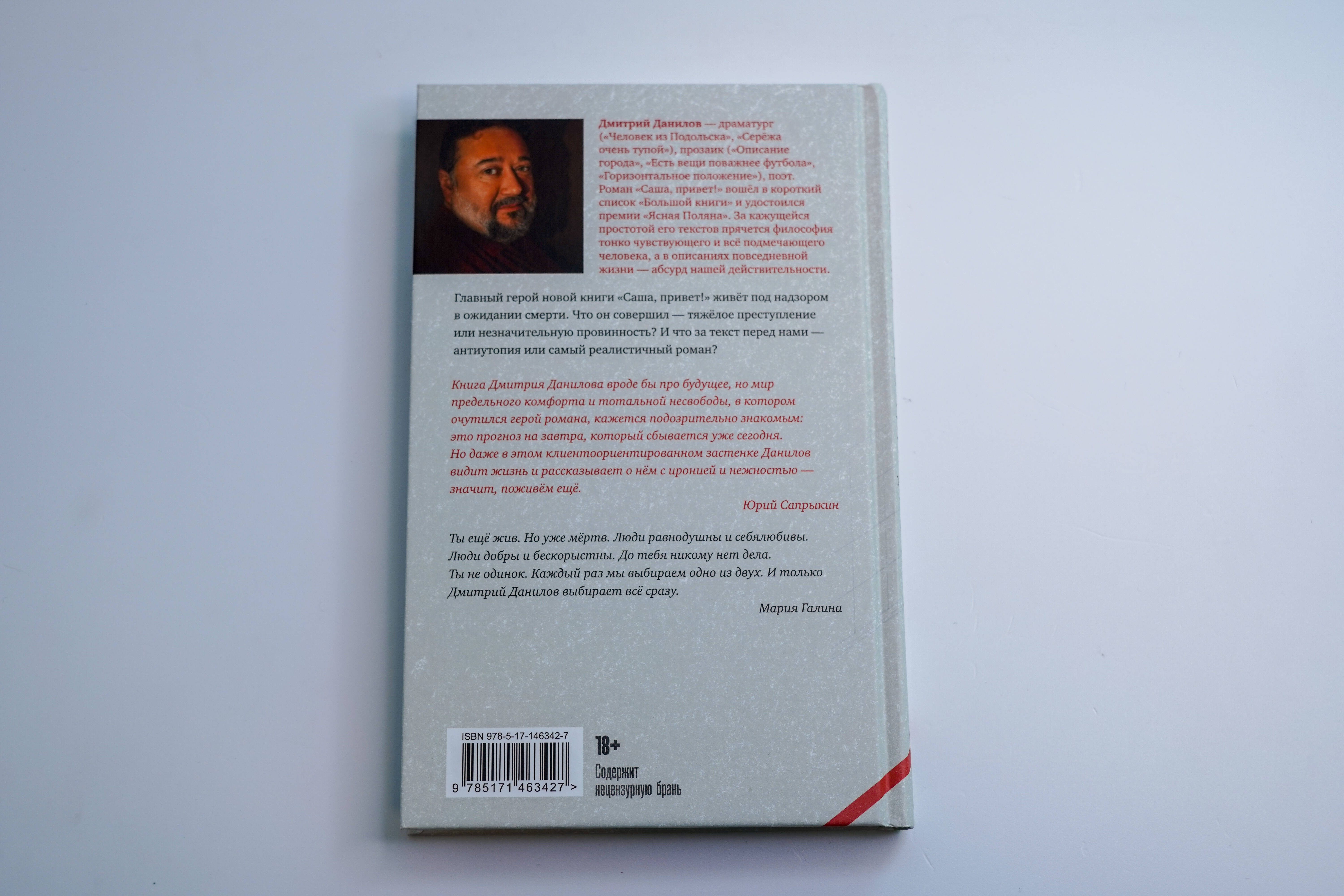 Новый роман Дмитрия Данилова, известного прозаика, поэта и драматурга, лауреата «Золотой маски», премии Андрея Белого и Московской арт-премии, финалиста «Большой книги» и премии «НОС». Произведения автора переведены на несколько европейских языков, а пьесы поставлены на сценах театров «Современник», «Практика», Мастерская Петра Фоменко и Театр.doc. Режиссер Семен Серзин снял фильм «Человек из Подольска» по одноименной пьесе Данилова. «Саша, привет!» - удивительный по структуре роман, состоящий из 82 эпизодов жизни человека, приговоренного к заключению в Комбинате исполнения наказаний и смертной казни. Это философская, ироничная и завораживающая в своей пугающей обыденности антиутопия, которая проходит по самому краю реального, почти не включая в себя фантастические допущения. Главный герой книги Сережа чем-то напоминает всех ключевых персонажей самых сильных и значительных антиутопий, от Д-503 до Йозефа К., однако условия, в которые он поставлен, - еще никем до этого придуманы не были.| Издательство | ИЗДАТЕЛЬСТВО "АСТ" |